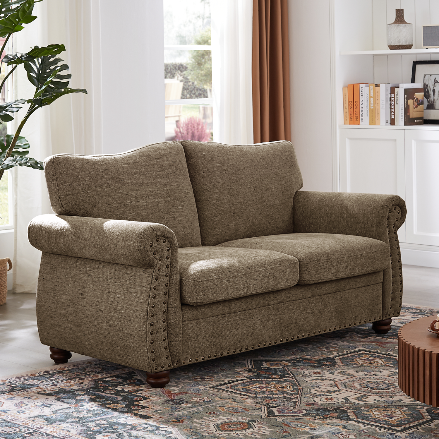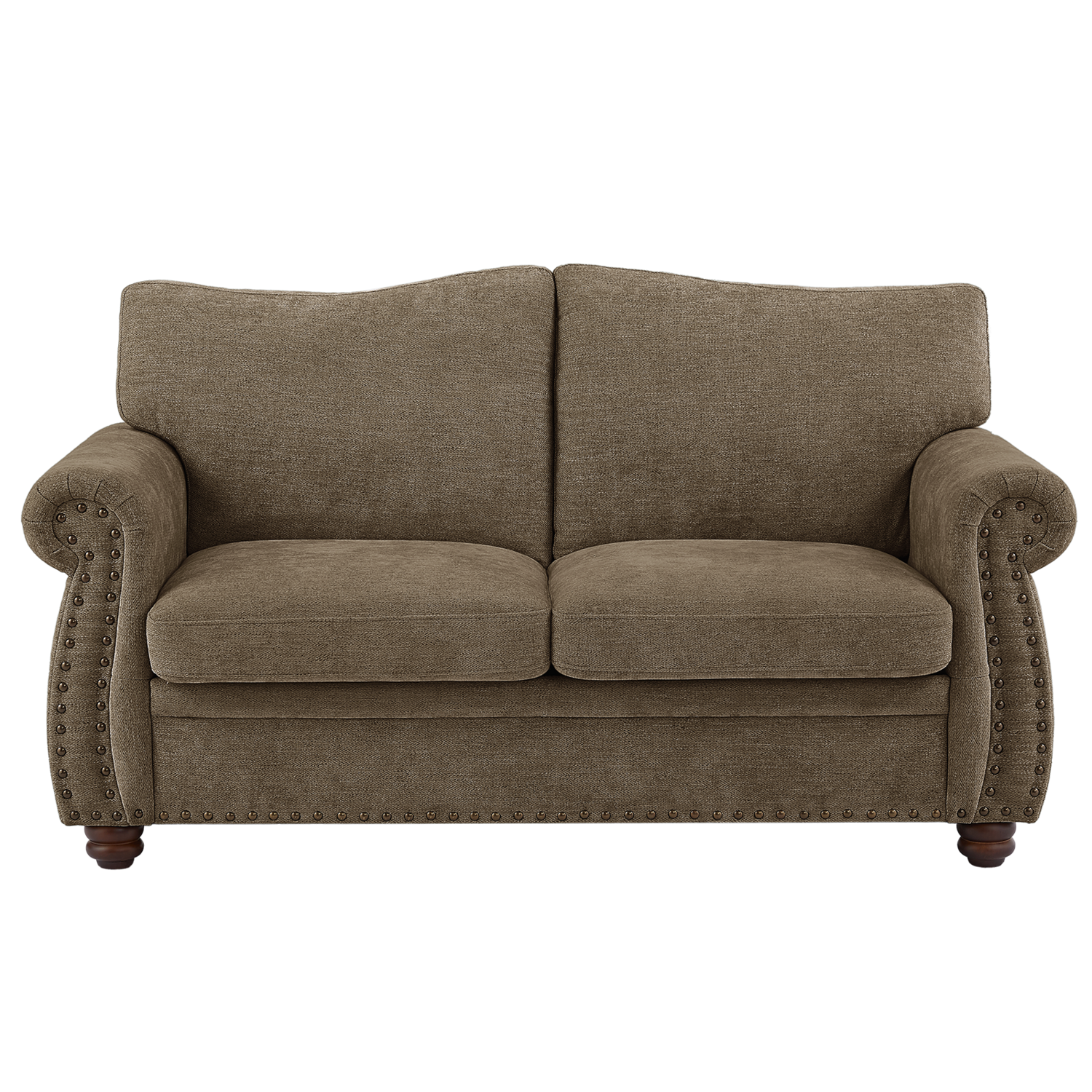66 Inch Loveseat Couch Chenille Fabric Nailhead Sofa with Springs Seat Cushion, Rolled Arms