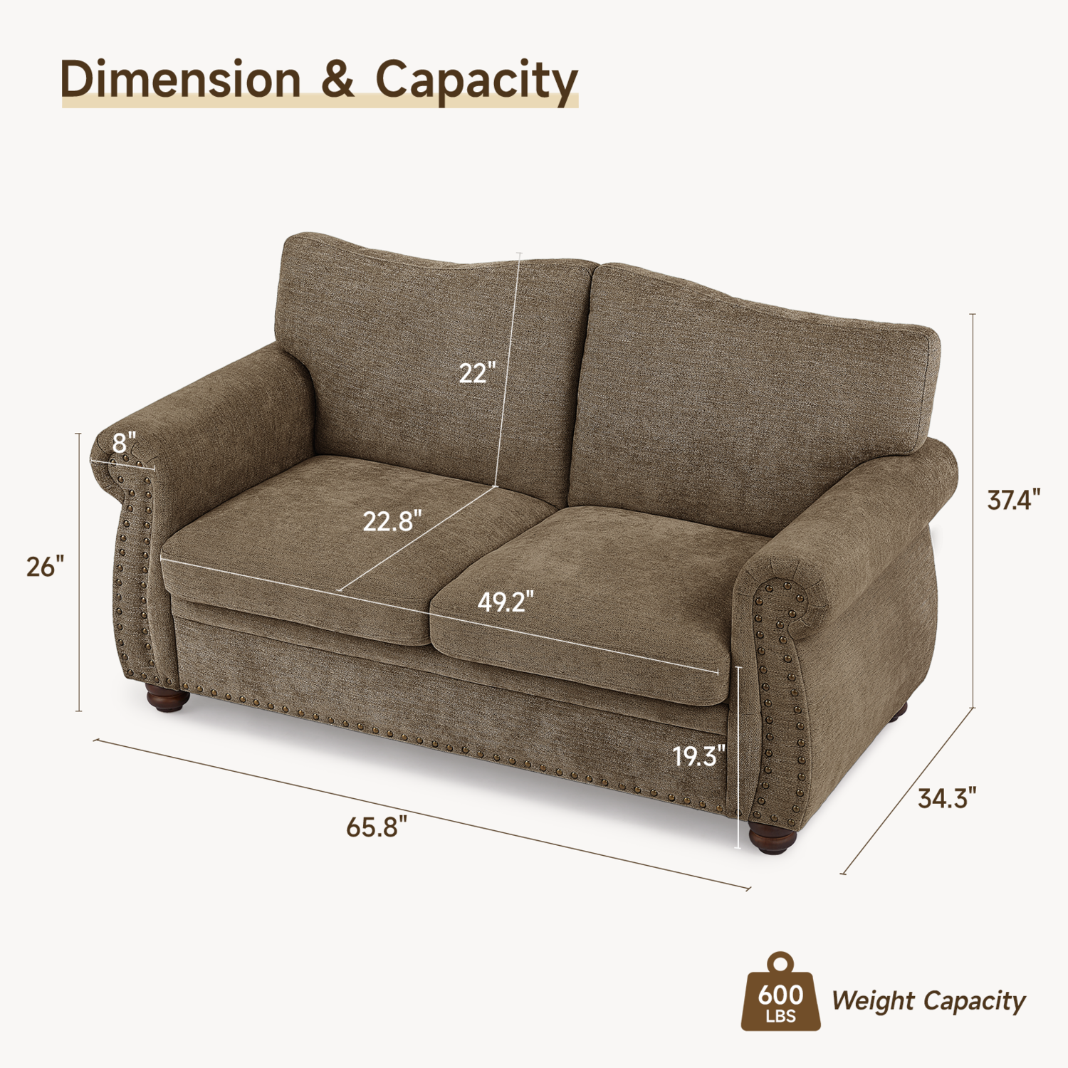 You can easily install the nailhead sofa by following the detailed step-by-step instructions. Due to different lighting, there may be slight differences in color.