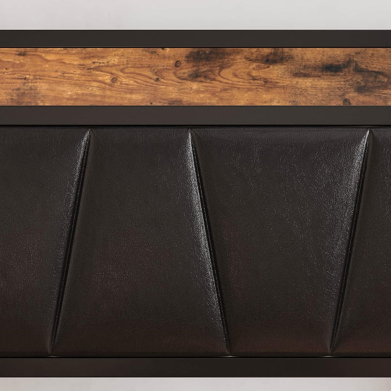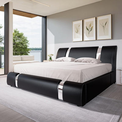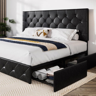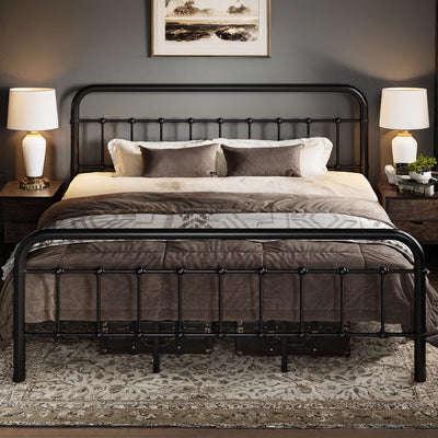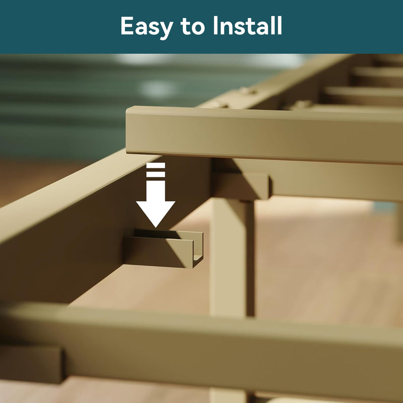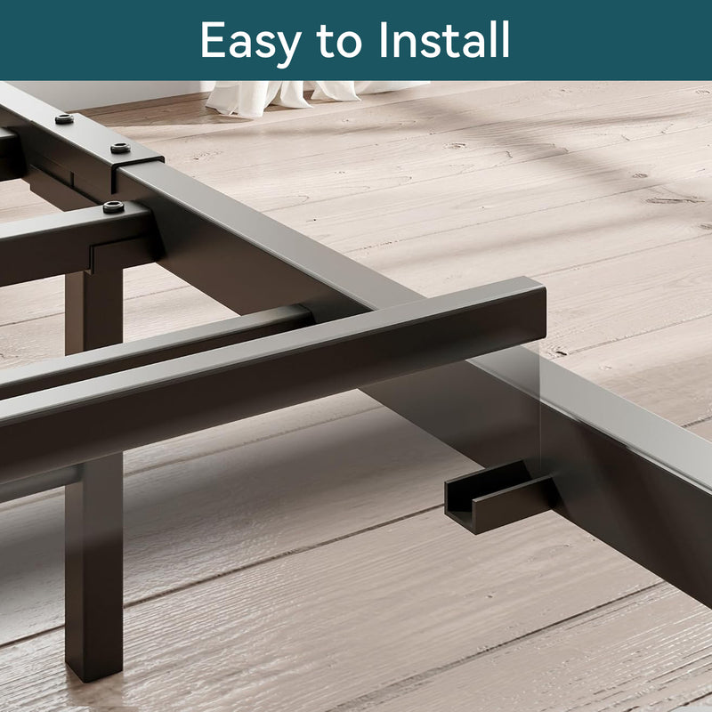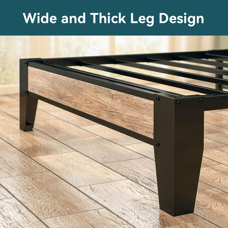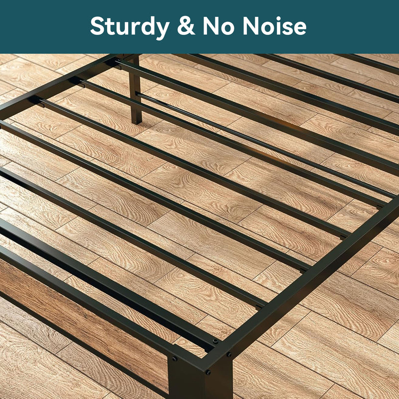 This storage headboard comes with a 4.9-foot power cord, two standard outlets, and a USB port for convenient charging of electronic devices, while keeping small items like phones, glasses, and books within easy reach. The bed frame is reinforced with heavy-duty metal slats to ensure structural stability and durability. Its design provides optimal support for all types of mattresses, eliminating the need for a spring mattress base. The bed legs feature a thick, wide angle iron design to enhance support, adding both aesthetic appeal and strength to the bedroom. Additionally, this platform bed features 10.6 inches of clearance underneath, providing extra storage space.