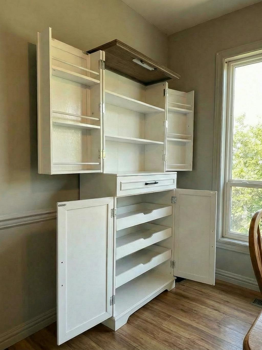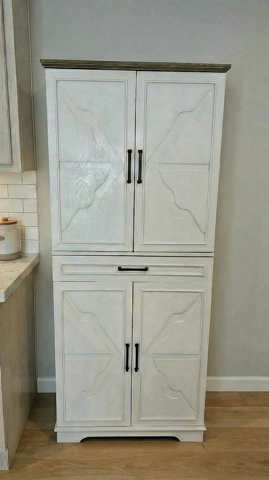 72" Farmhouse Kitchen Pantry Cabinet, Tall Freestanding Cupboard with Sliding Storage Rack & 6 Hanging Shelves