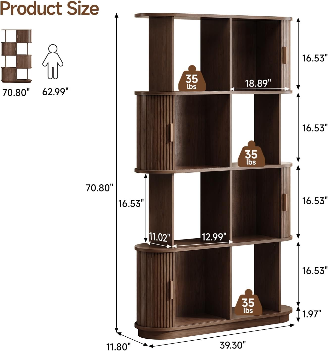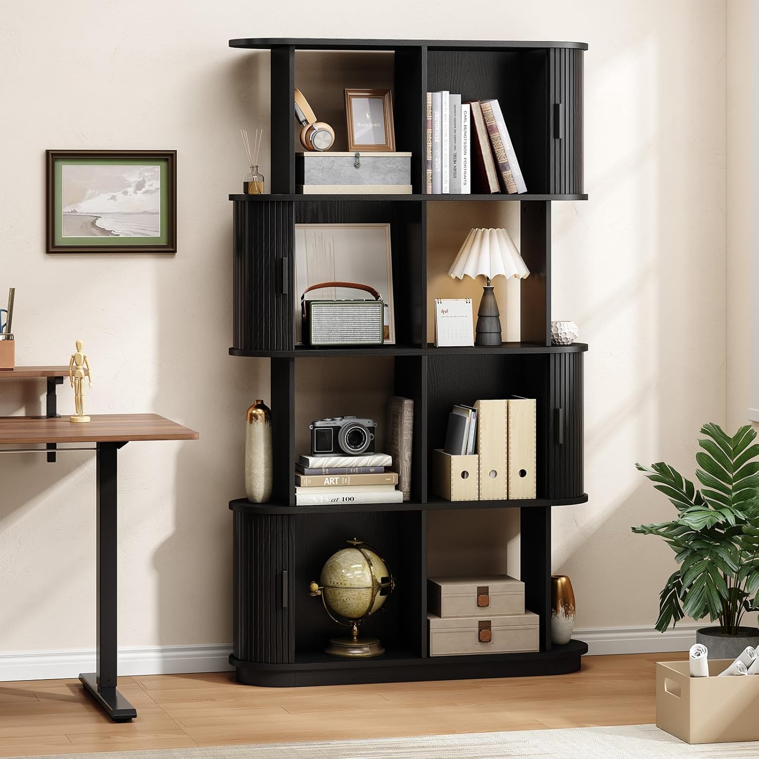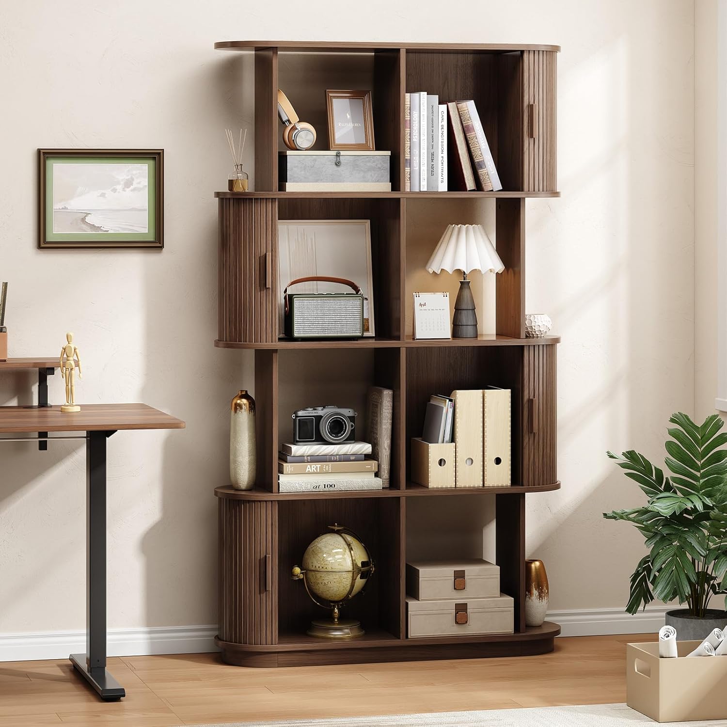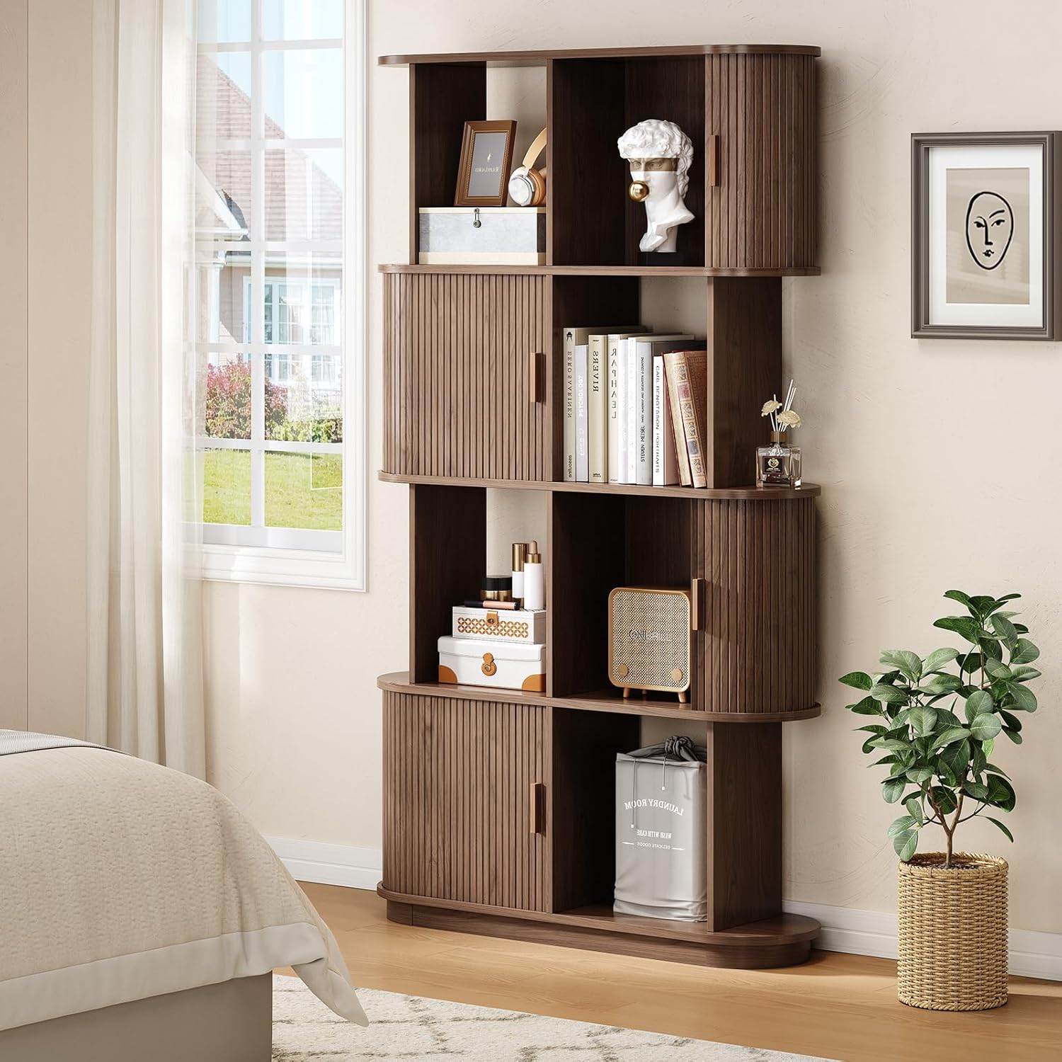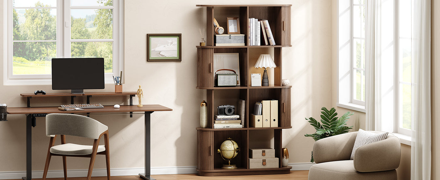 This bookcase stands out with its retro charm. The staggered roller shutter doors not only add a unique aesthetic to your home, but also provide flexible storage space—they can hide clutter or display your favorite decorations.