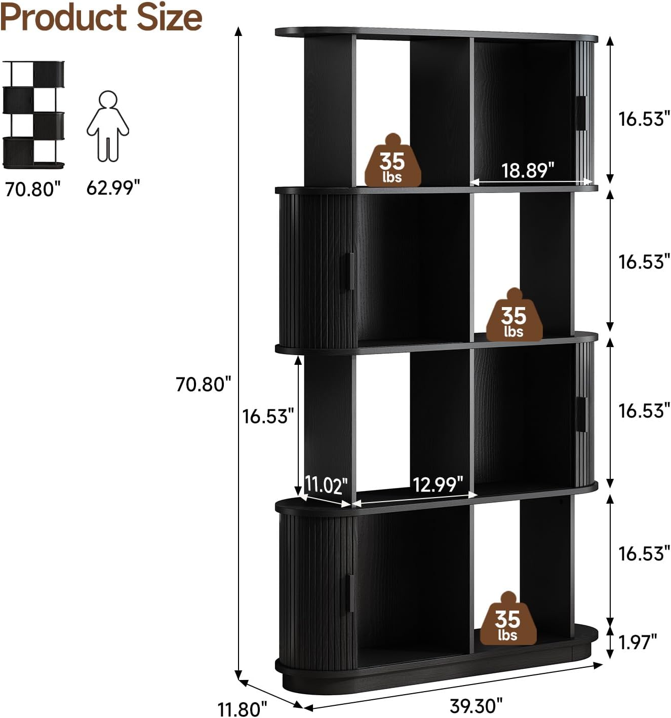 This 4-tier bookshelf provides ample storage space. Its dimensions are 11.8 x 39.3 x 70.8 inches. It can be used as a bookshelf, storage shelf, or display shelf.