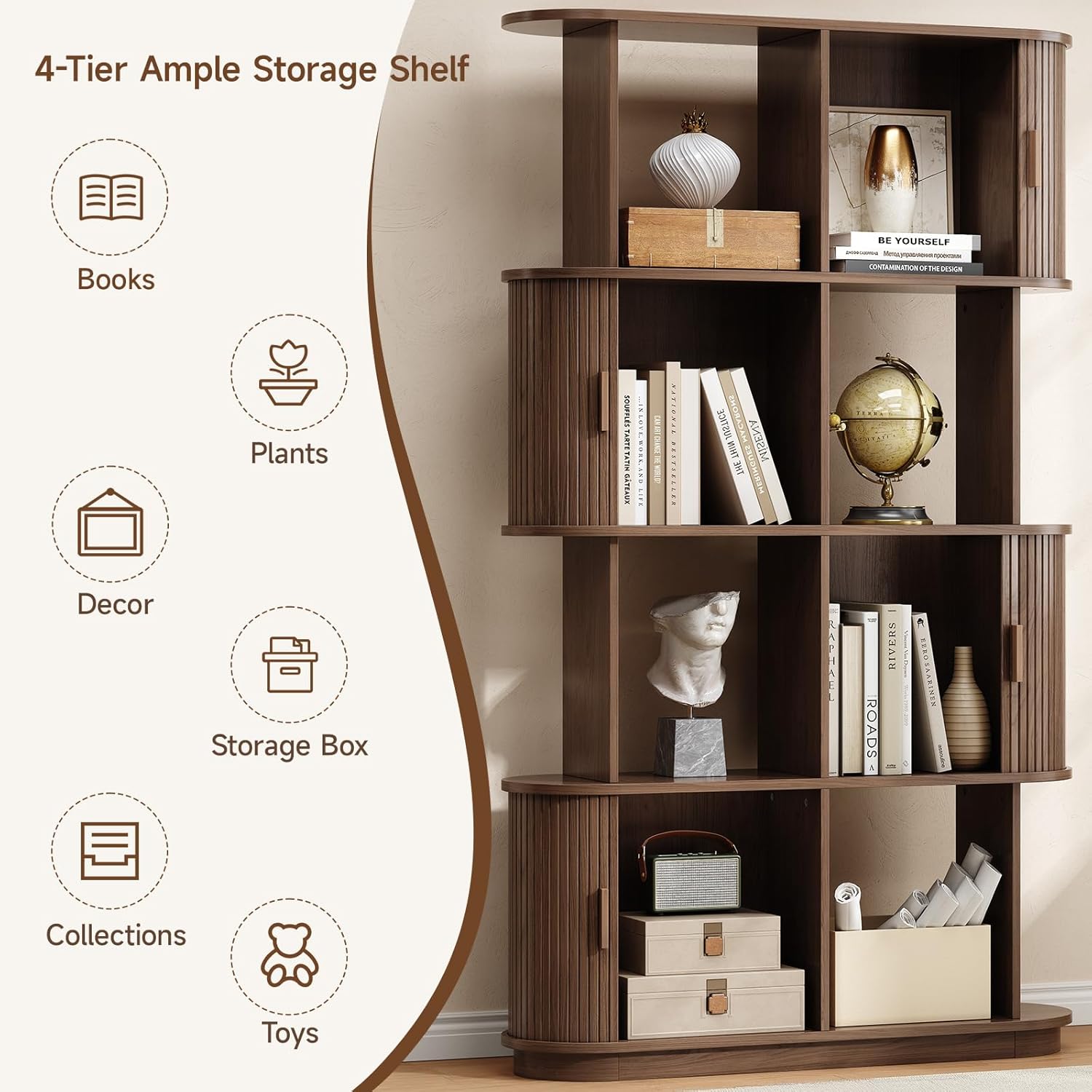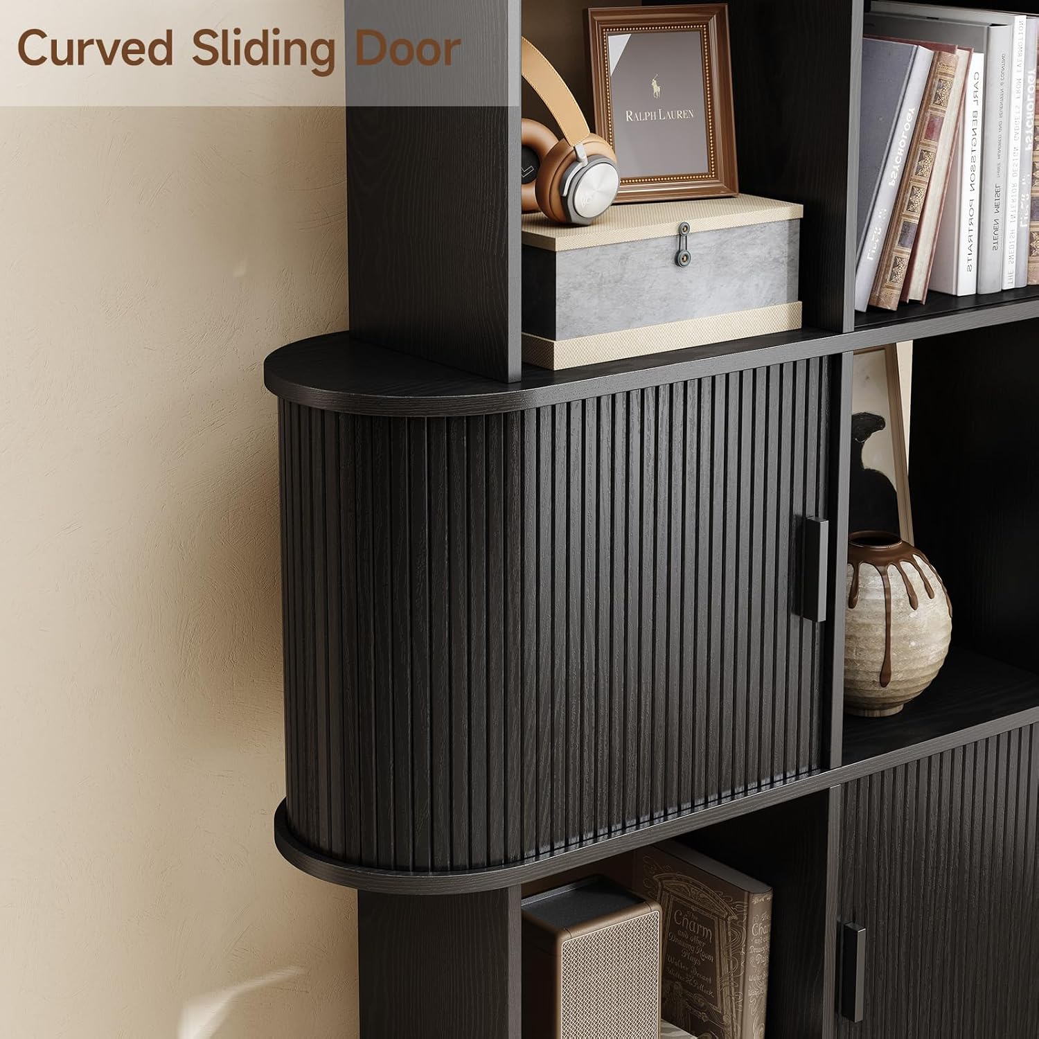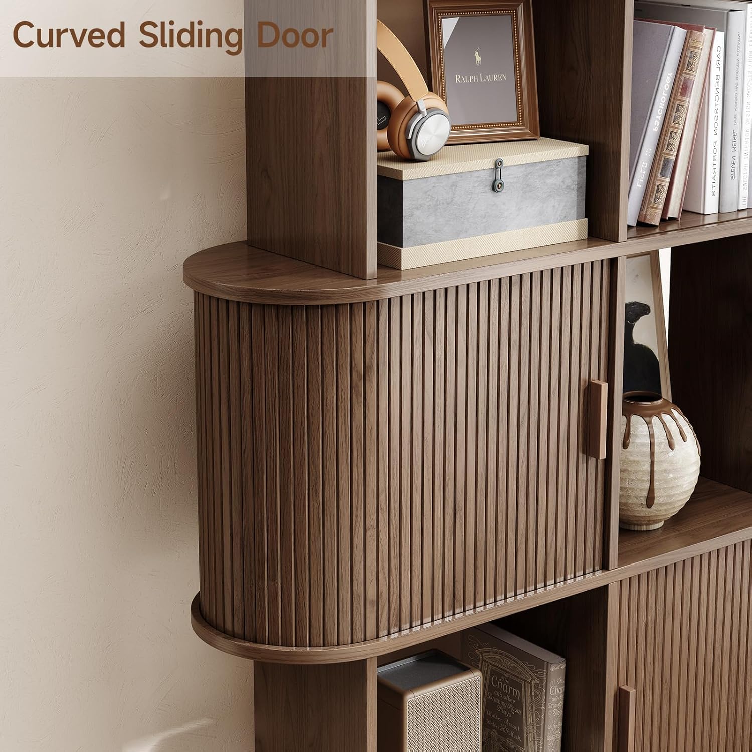 This bookcase is part of the OHWILL furniture family's sliding door collection. This bookshelf features a special design with curved edges and sliding doors. Although the sliding doors are complex, they are both practical and beautiful. Opening and closing the storage door is like opening and closing a scroll painting.
