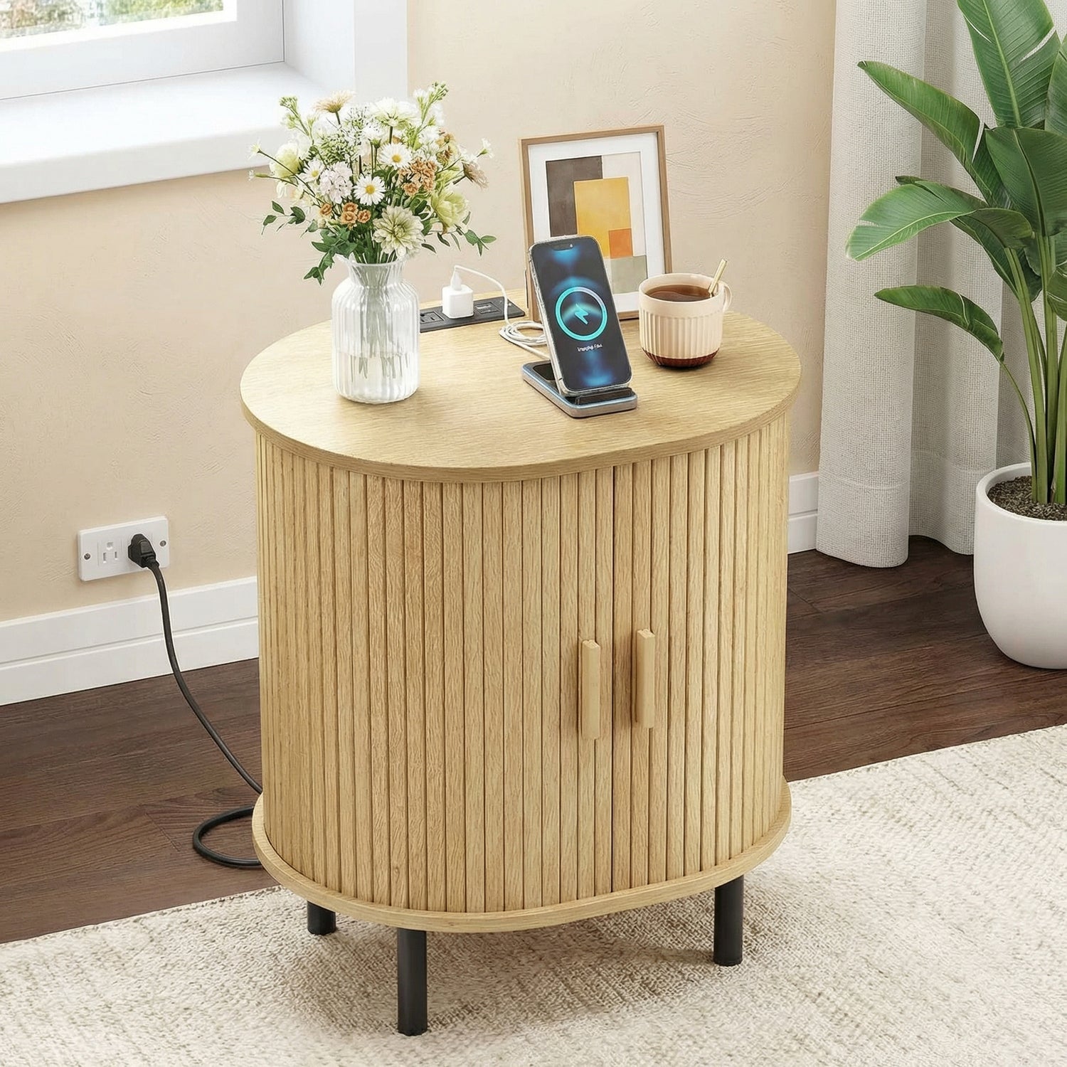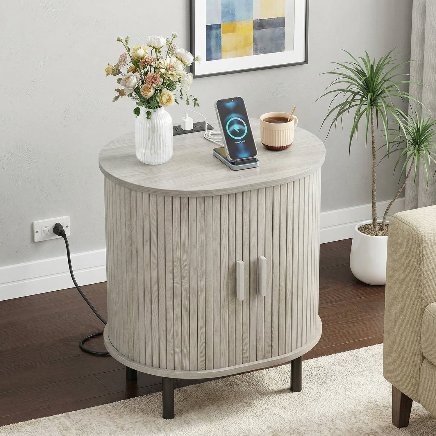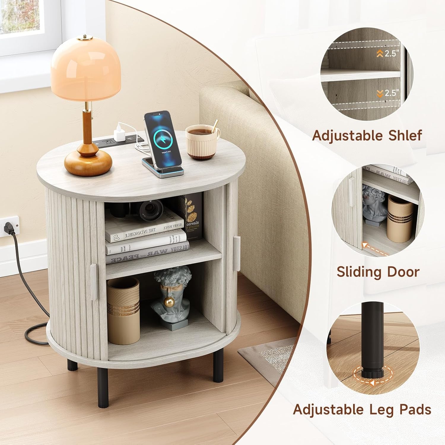 This end table measures 16"D x 20"W x 23.5"H, offering enough storage space without taking up too much floor space. The oval table includes a built-in charging station with two standard power outlets, one USB port, and one Type-C port, allowing you to charge multiple devices at the same time.