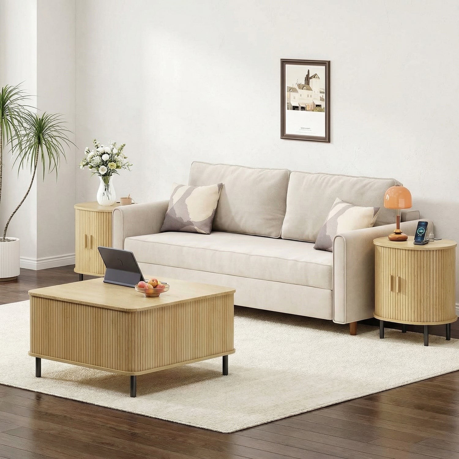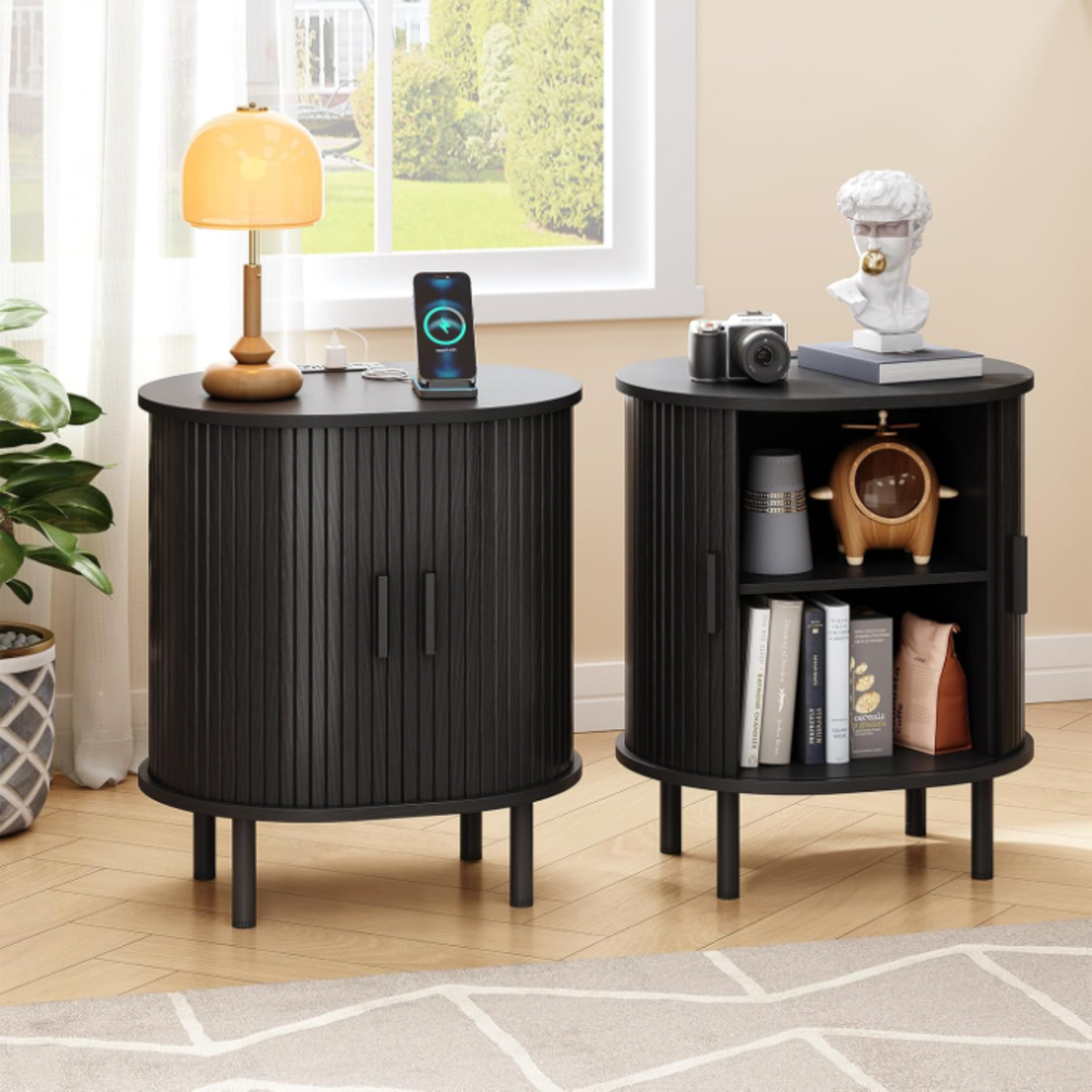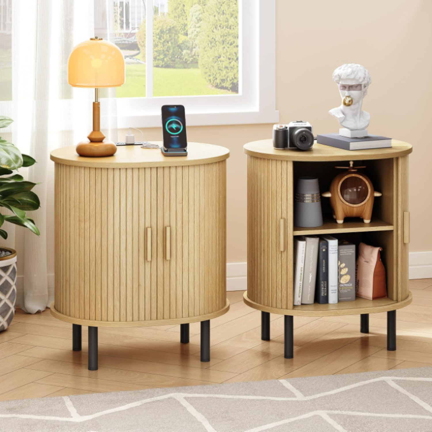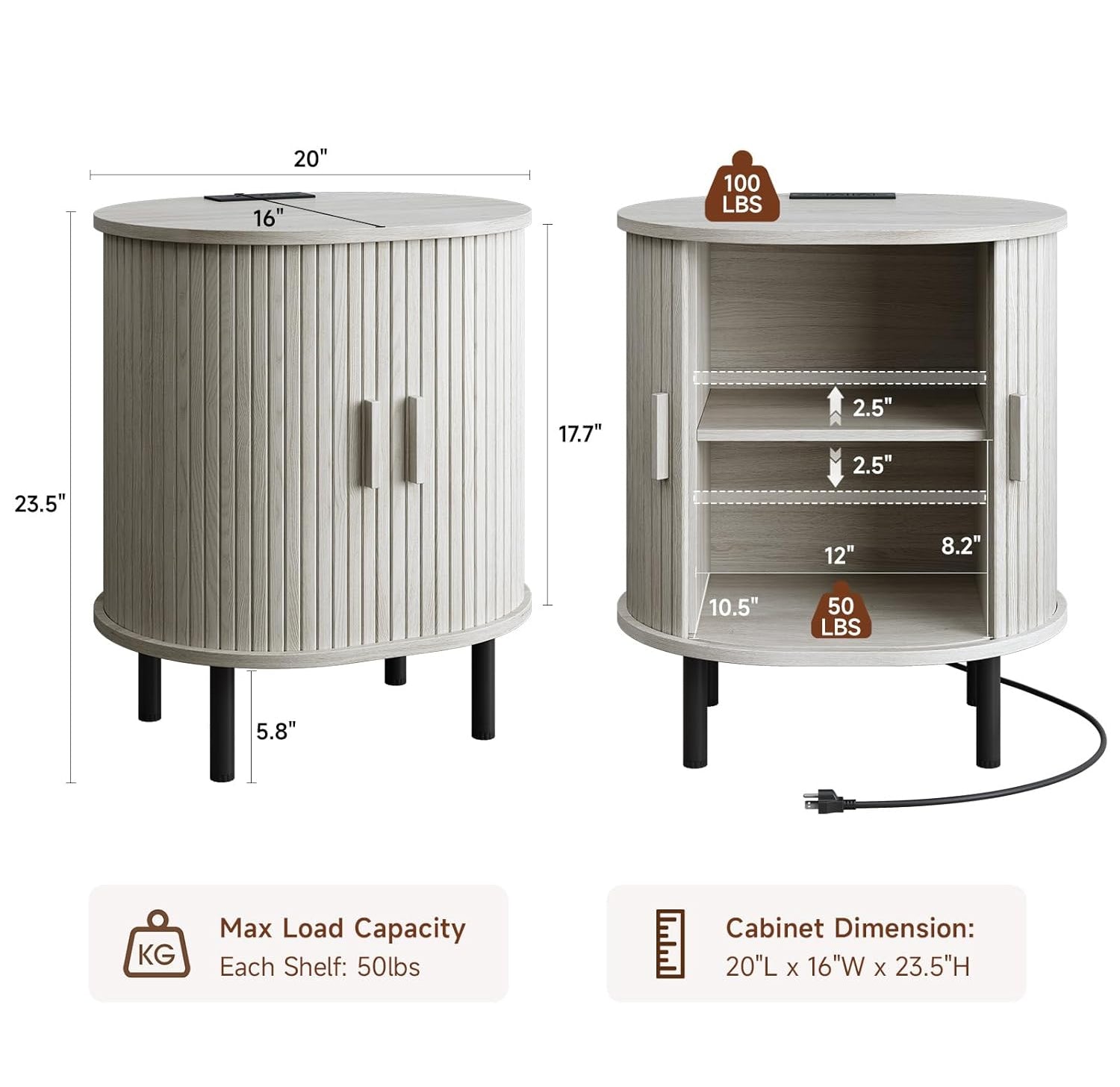 This end table measures 16"D x 20"W x 23.5"H, offering enough storage space without taking up too much floor space. The oval table includes a built-in charging station with two standard power outlets, one USB port, and one Type-C port, allowing you to charge multiple devices at the same time.