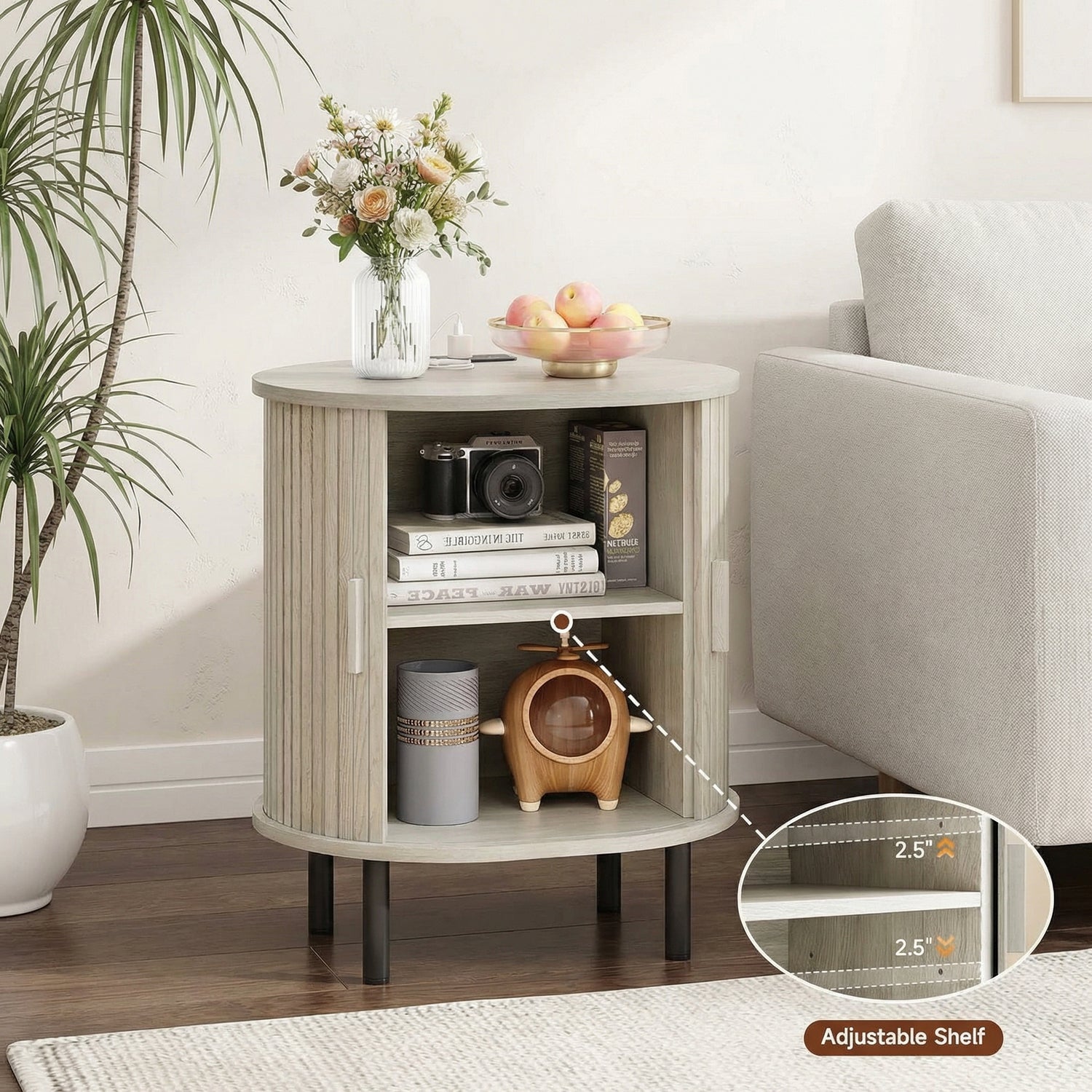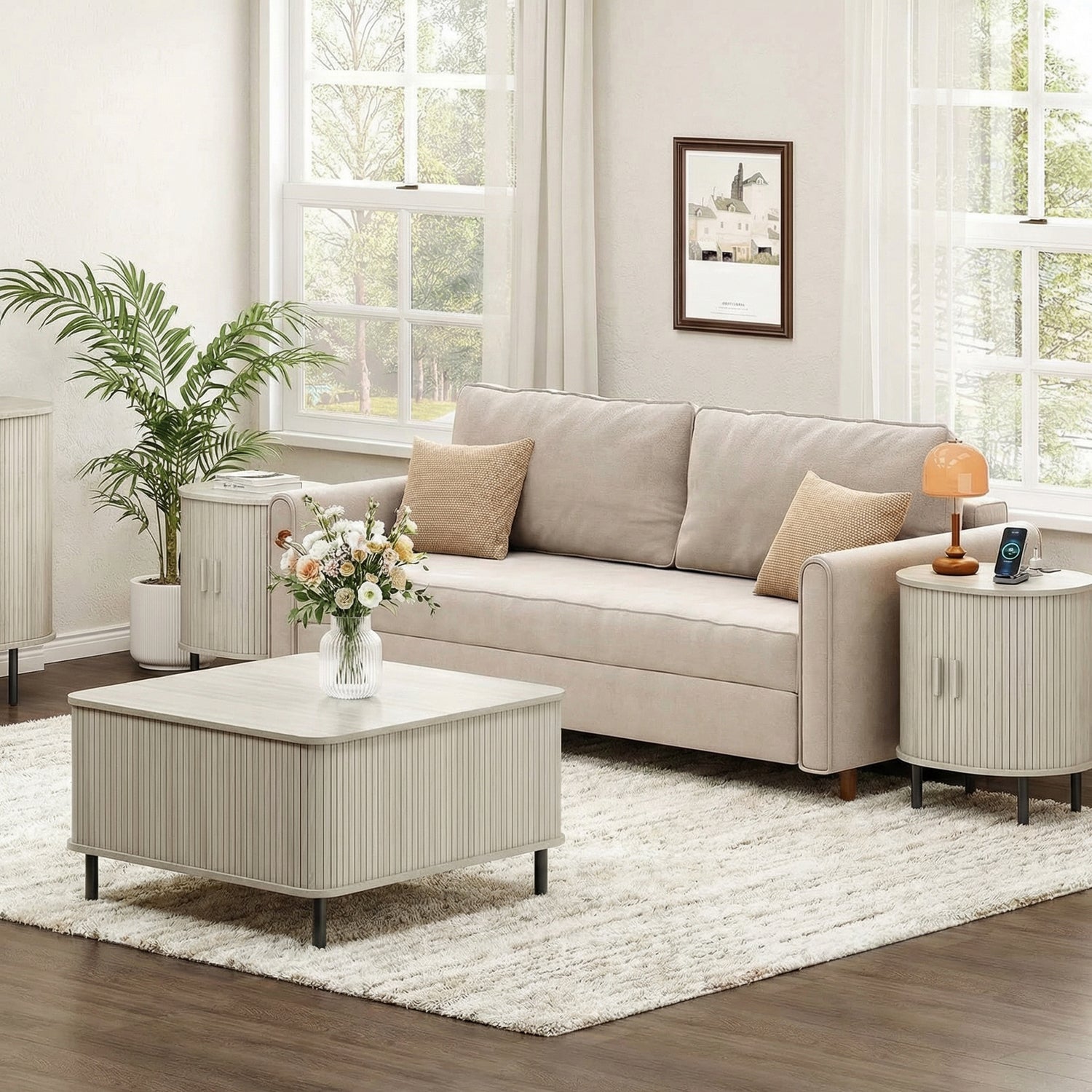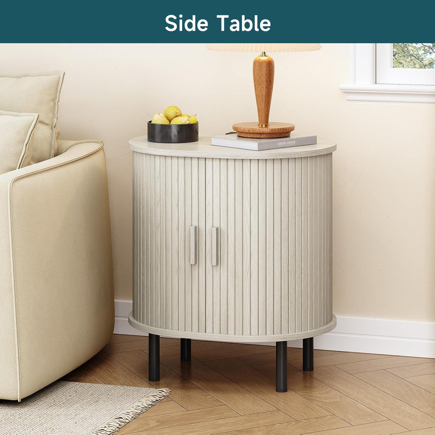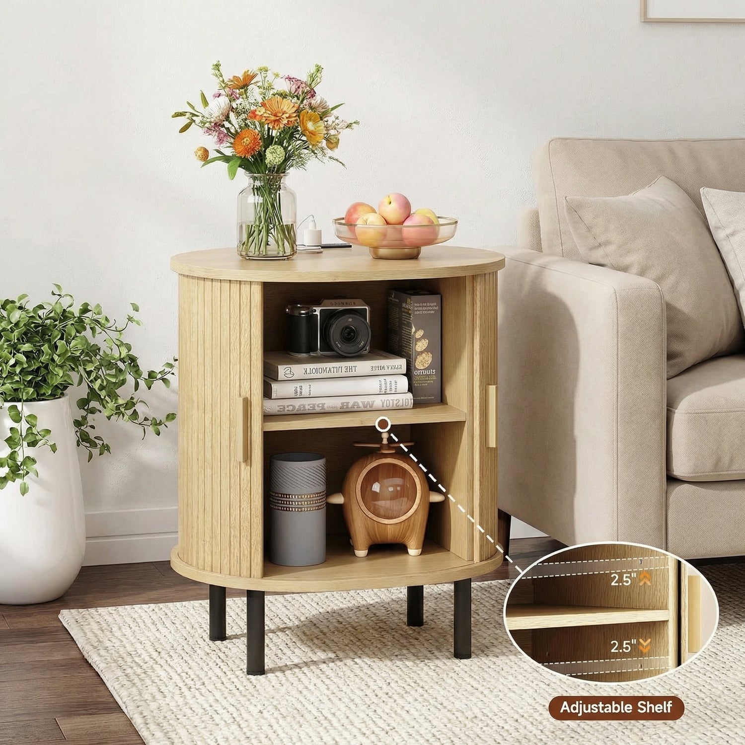 For storage, the couch end table features an interior cabinet with an adjustable shelf. The shelf can be set at different heights to fit items of various sizes, such as books, storage boxes, or personal belongings. The sliding door design keeps your items hidden from dust while still being easy to open and close smoothly.