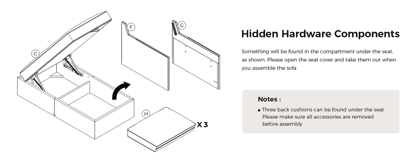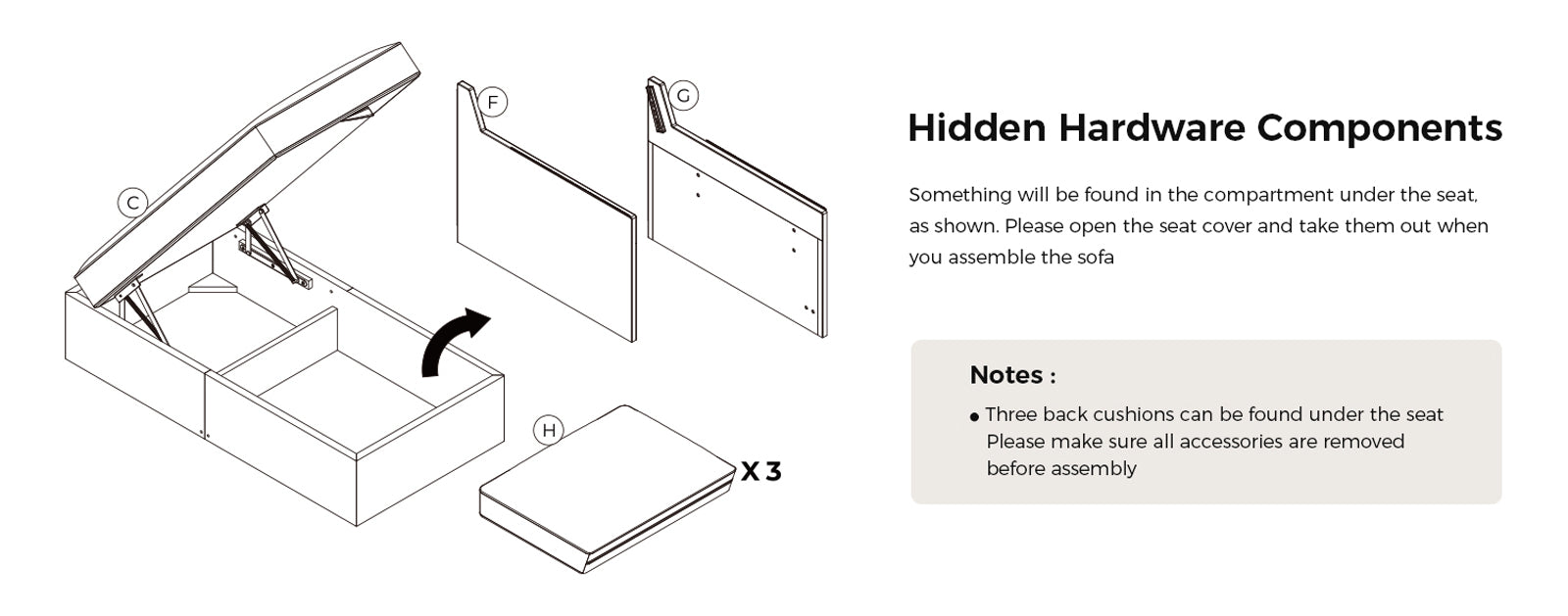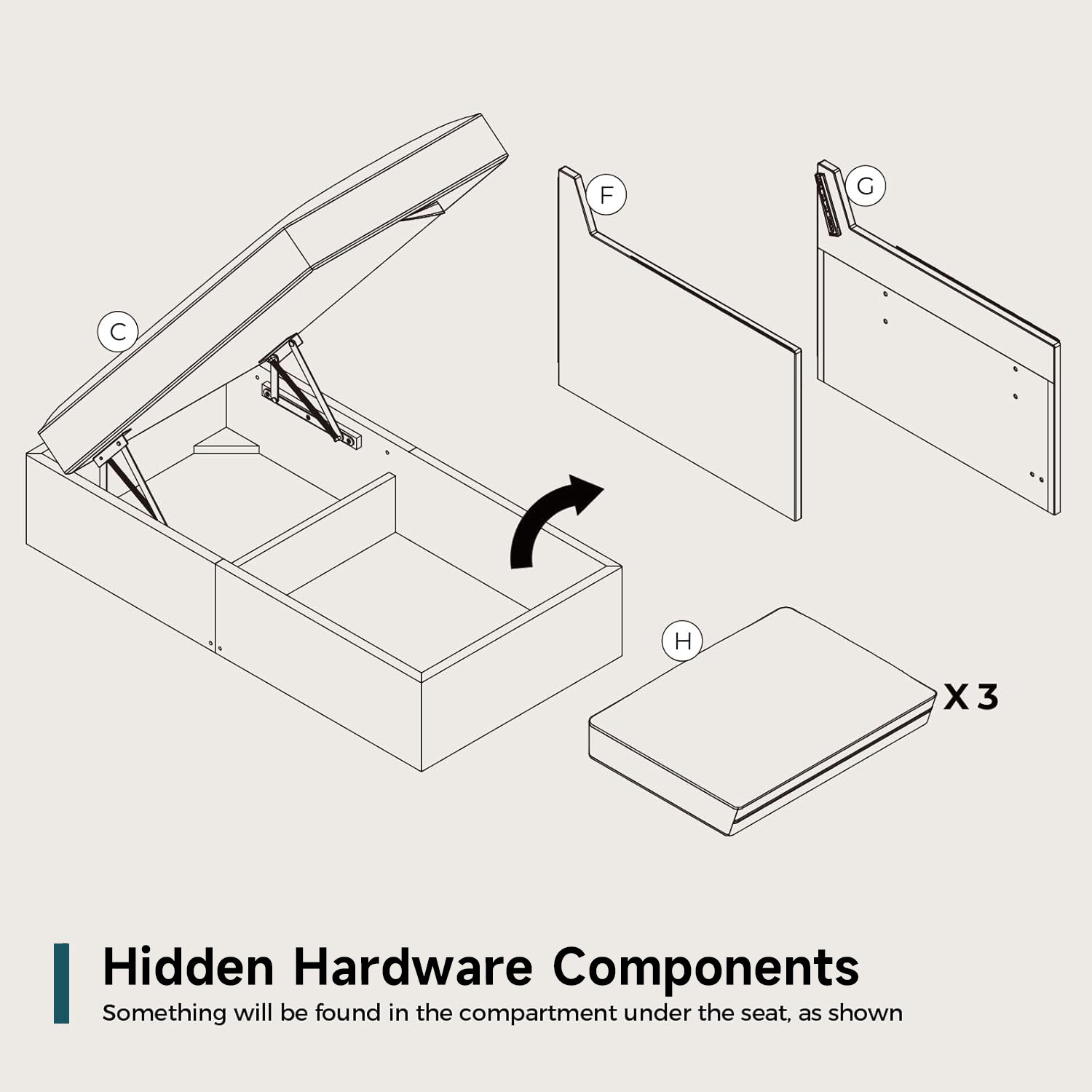 The hidden storage chaise adds smart organization without sacrificing style. A generously sized storage compartment keeps blankets, pillows, and essentials neatly tucked away, helping maintain a clean and clutter-free living space.