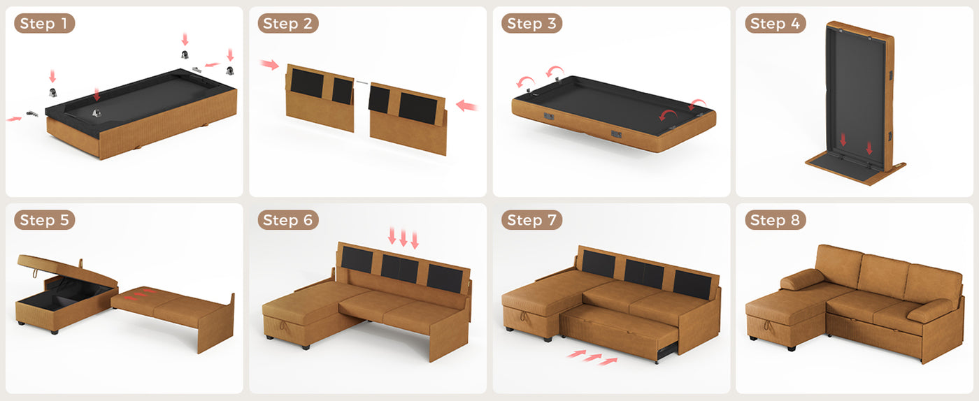 Simple and efficient assembly keeps setup stress-free. Pre-drilled components, included hardware, and clear instructions allow the sofa bed to be assembled quickly with minimal effort, making it easy to enjoy comfort and functionality right away.