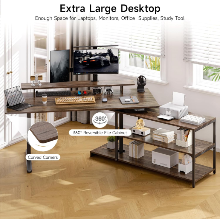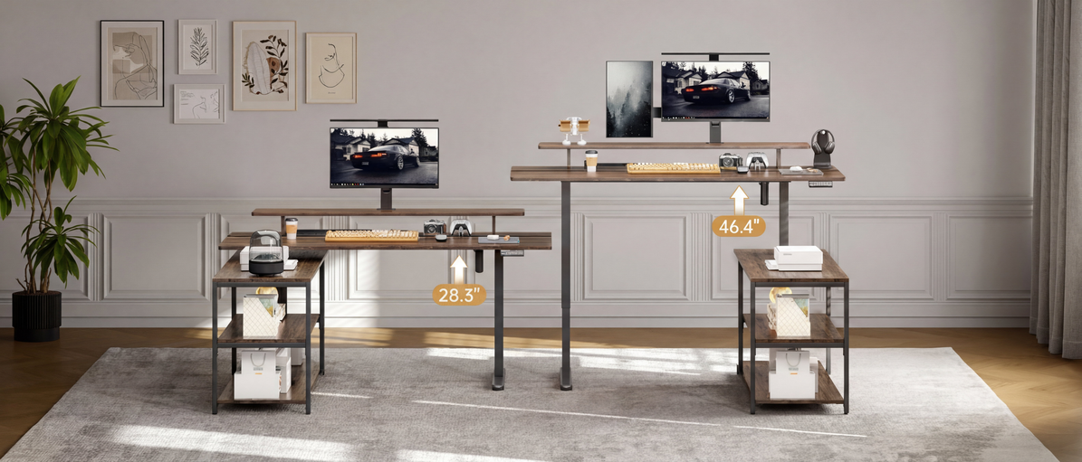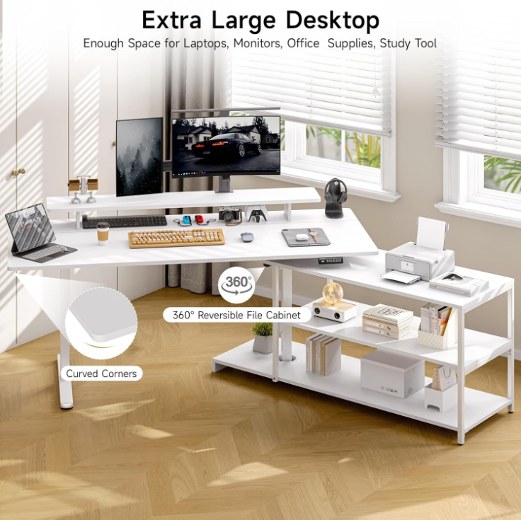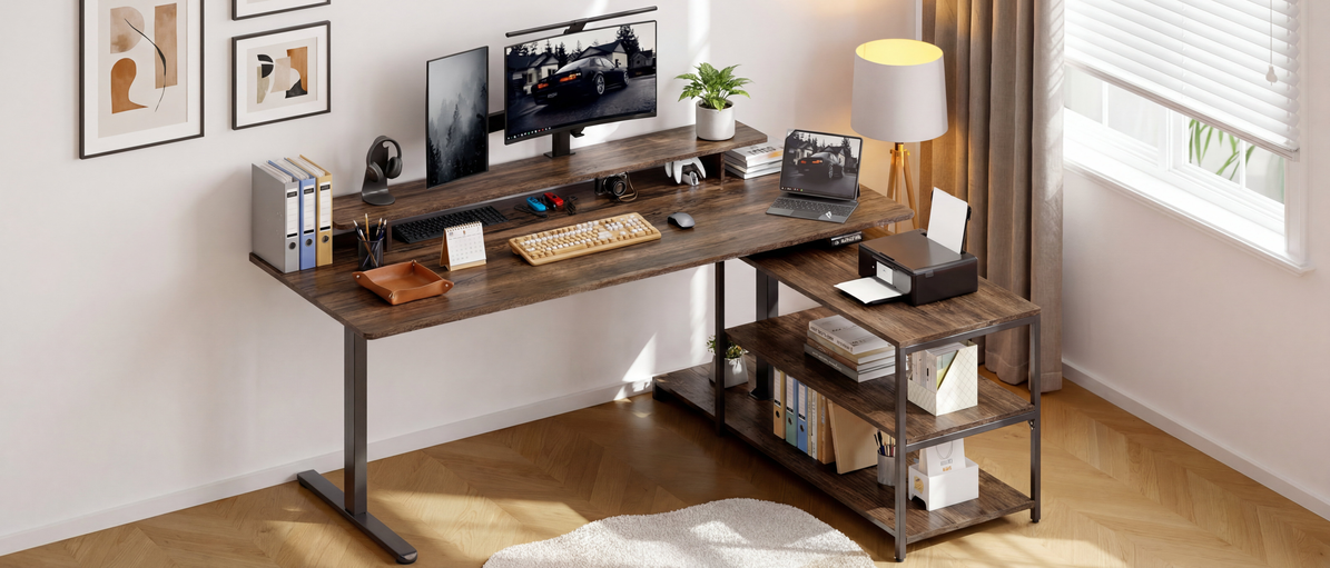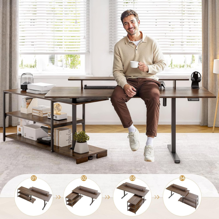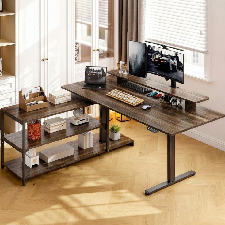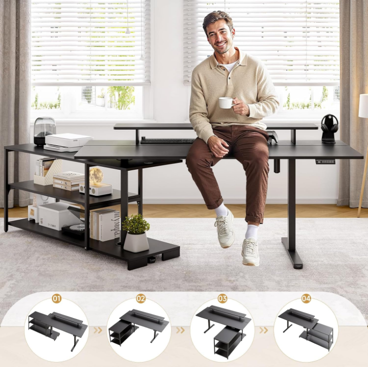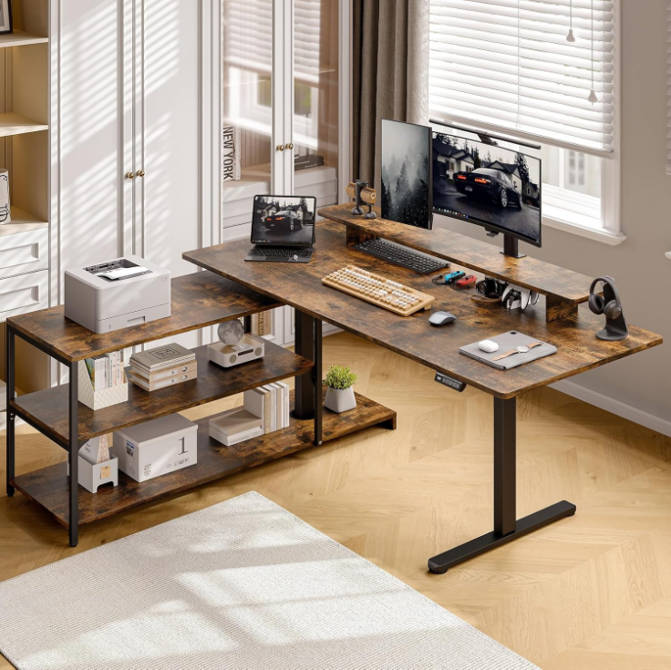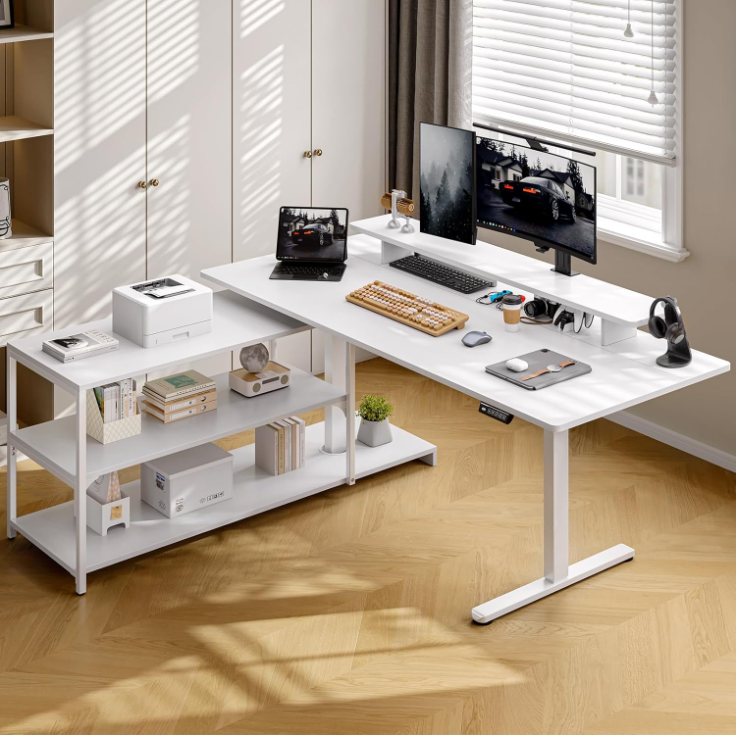 This L-shaped standing desk is built for everyday work, especially if you prefer a setup that stays flexible instead of fixed.