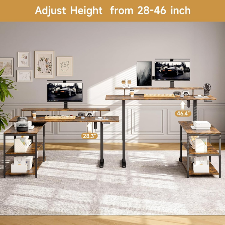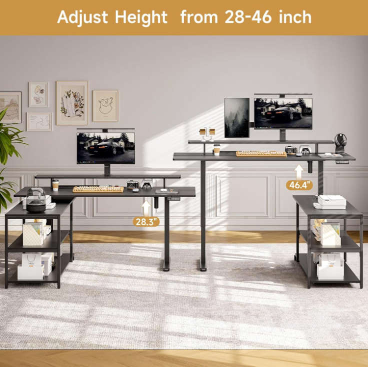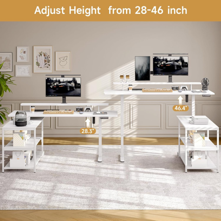 63'' x 23'' Reversible L Shaped Standing Desk, Corner Computer Desk with Storage Shelf, Monitor Stand & Memory Height Settings