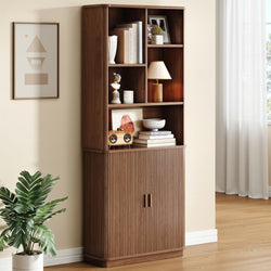 70.9 Inch Tall Bookcase with Doors, Wood Bookshelf with Storage and Adjustable Shelves for Living Room or Home Office