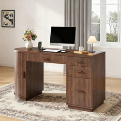 Behind the roll-up sliding door at the bottom, you can tuck away papers or storage boxes. The door slides smoothly and doesn’t swing into your space, which helps in tighter rooms.
