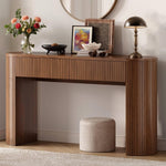 The entry table is crafted with a thicker tabletop and reinforced legs for stability. Rounded corners and fluted panels give it a soft, modern look, so it works well no matter if your home is more classic or contemporary. There are also small details like anti-tip hardware and pads under the legs that add to its safety and durability.