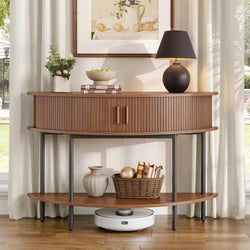 Fluted Console Table, 2-Tier Entry Table with Storage, 46 Inch Half Moon Entryway Table with Sliding Doors