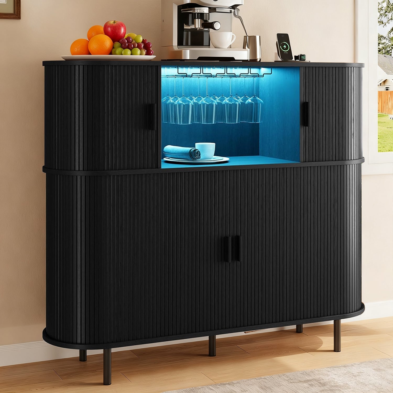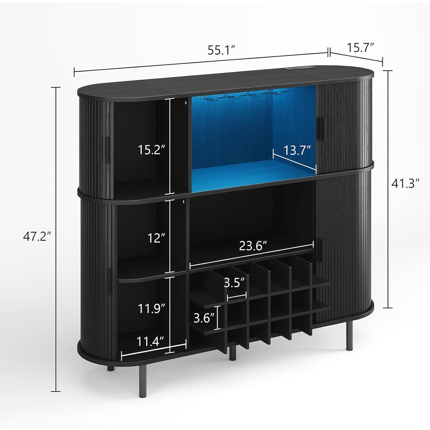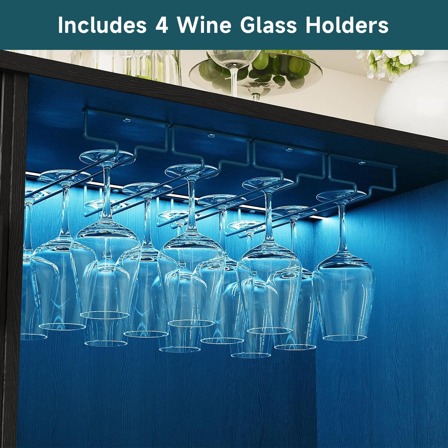 Wine Bar Cabinet with LED Lights, Liquor Cabinet with Charging Station, Detachable Wine Rack and Glass Holder