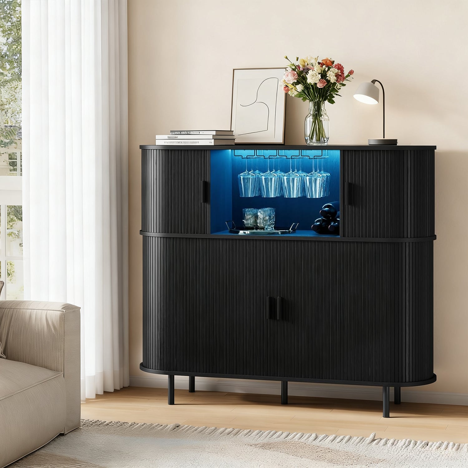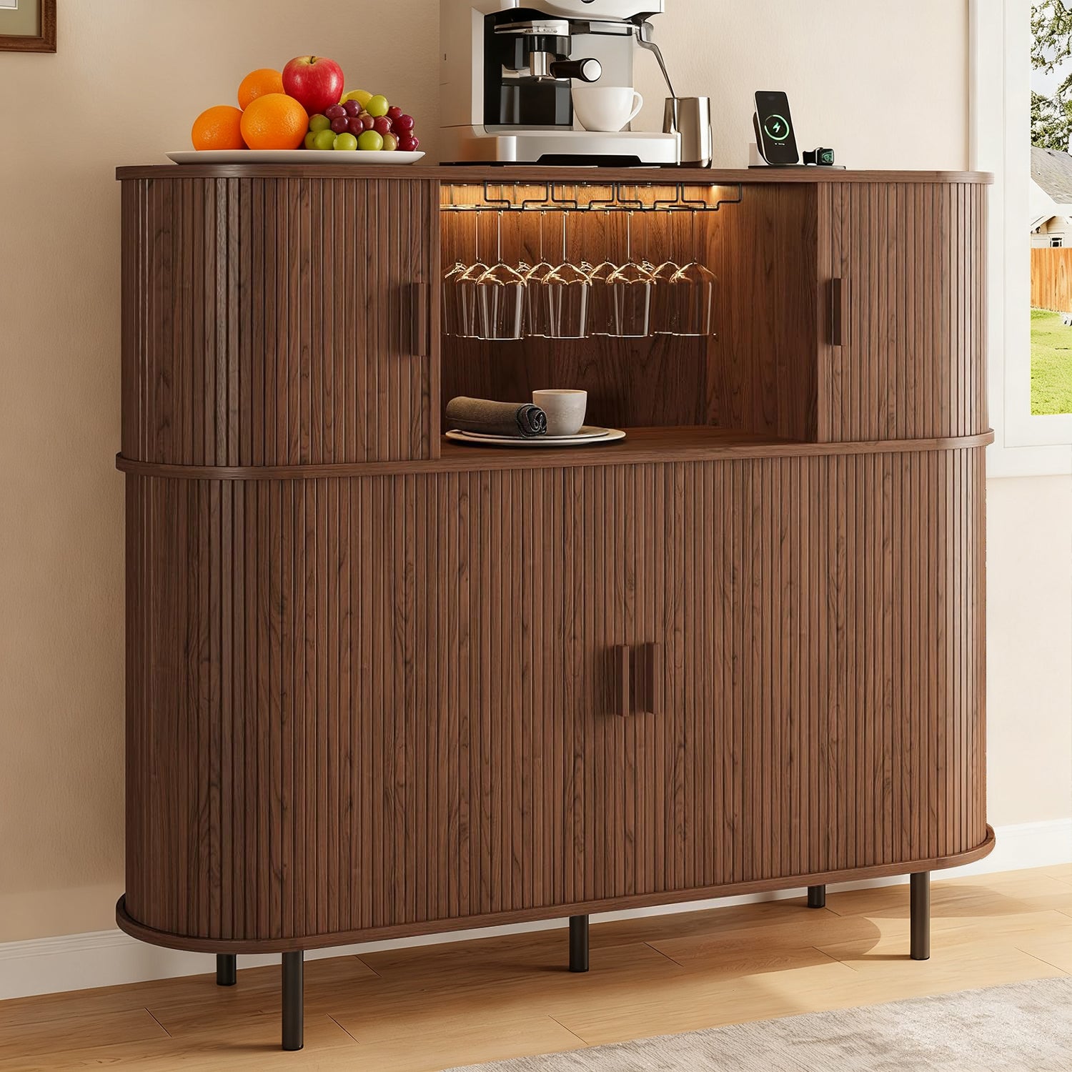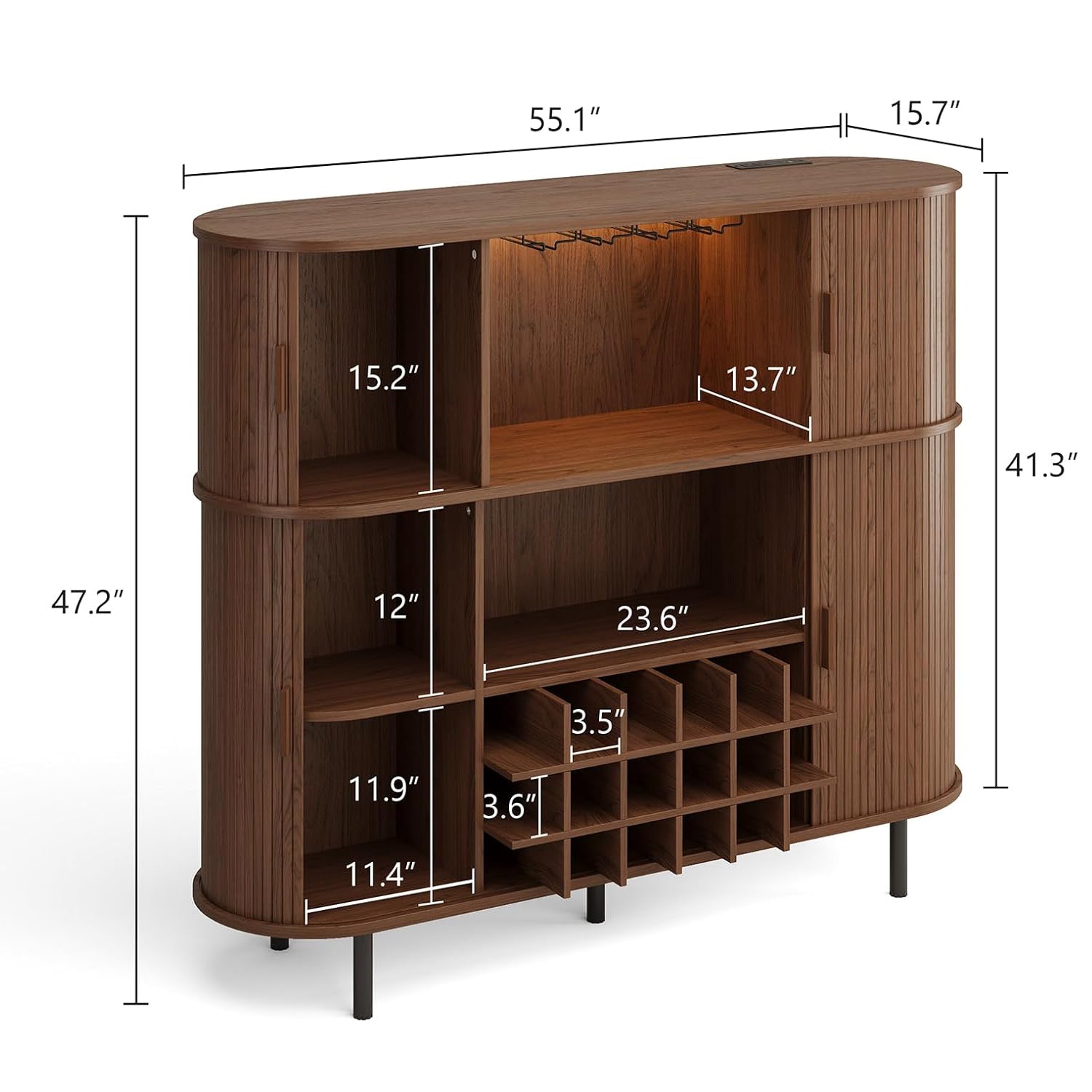 Wine Bar Cabinet with LED Lights, Liquor Cabinet with Charging Station, Detachable Wine Rack and Glass Holder
