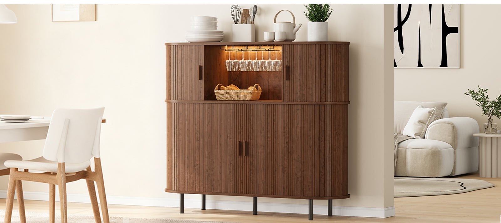 This buffet cabinet is sturdy and made from quality materials. The included wall-mount kit secures it to the wall for added stability. Overall, it’s a versatile piece that can work as a wine bar, coffee station, mini bar, or extra storage in almost any room.