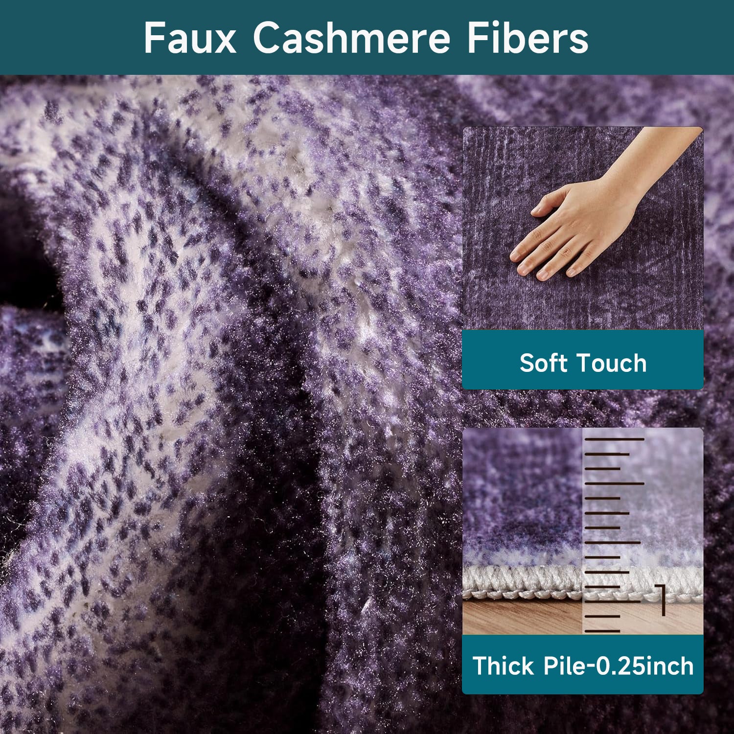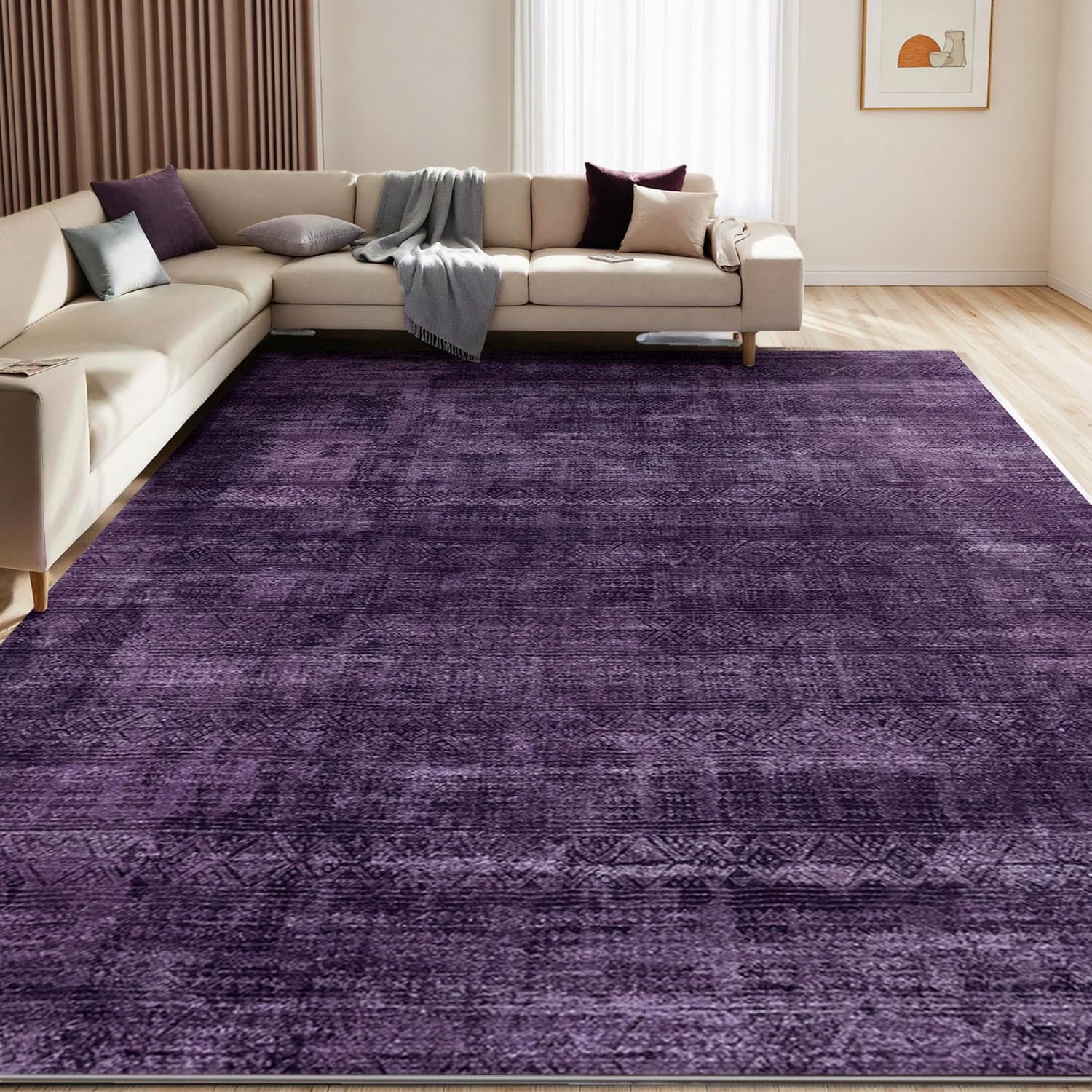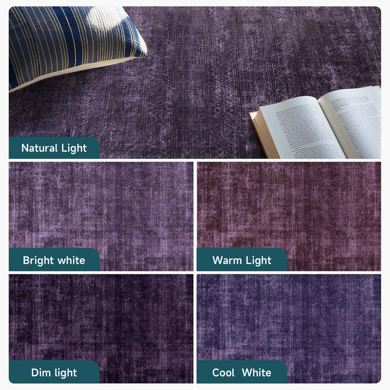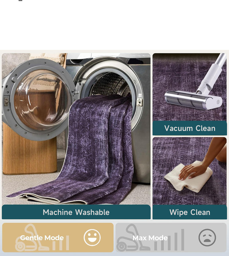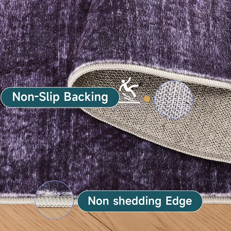 Purple Abstract Washable Area Rug, Soft Low-Pile Non-Slip Indoor Carpet for Living Room, Bedroom & Dining Room Décor