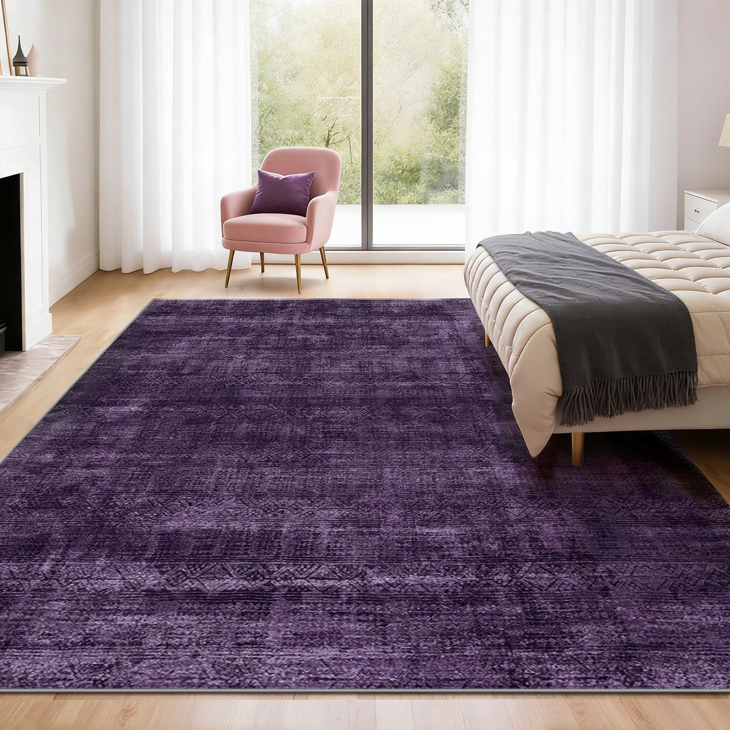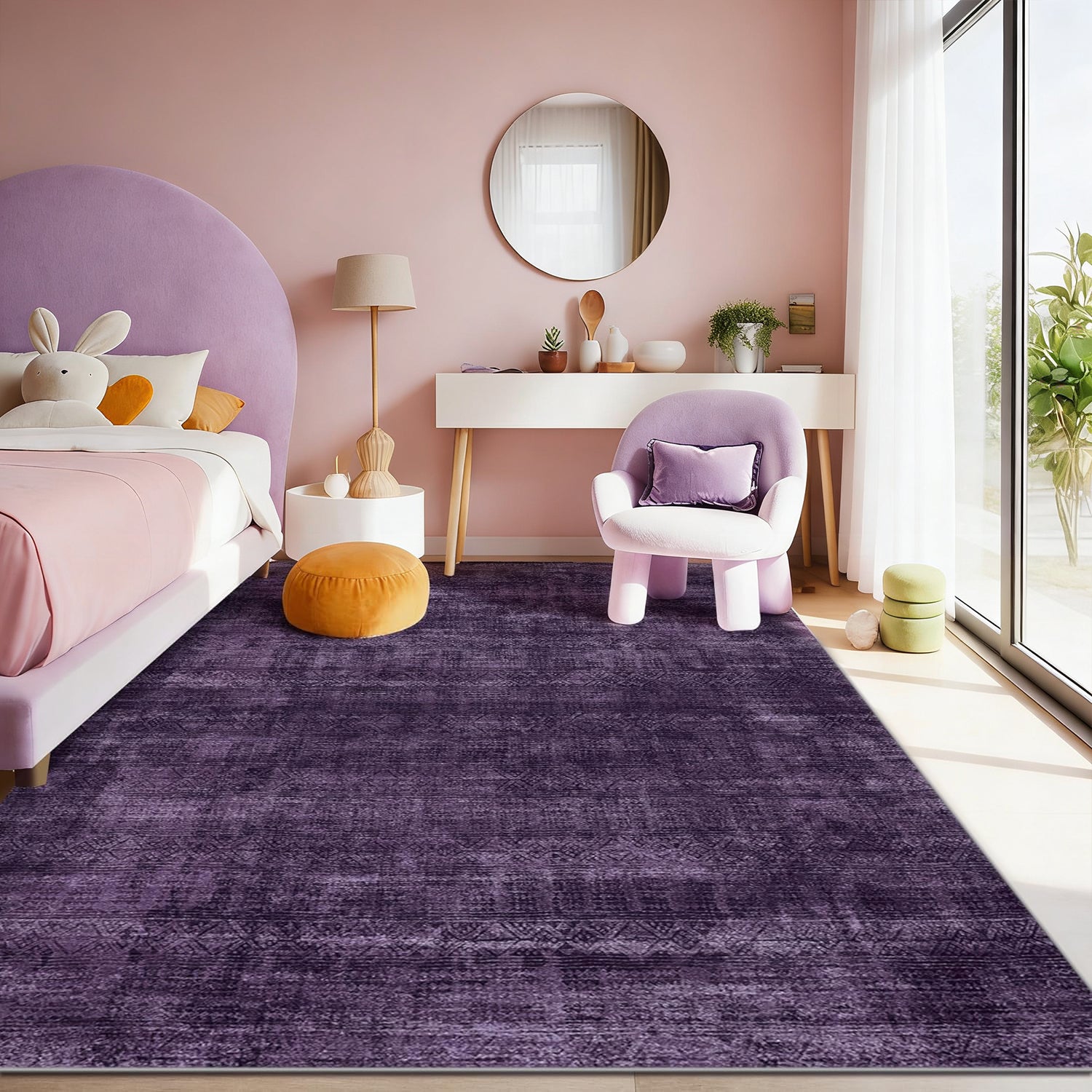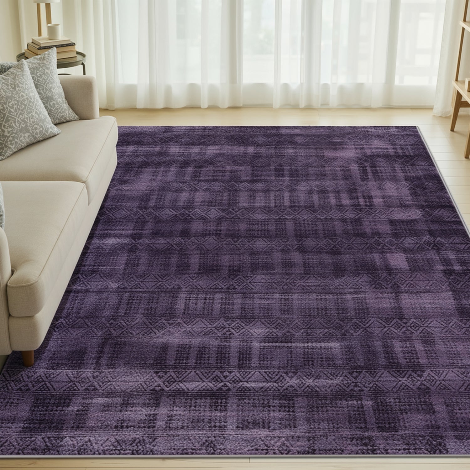 Purple Abstract Washable Area Rug, Soft Low-Pile Non-Slip Indoor Carpet for Living Room, Bedroom & Dining Room Décor