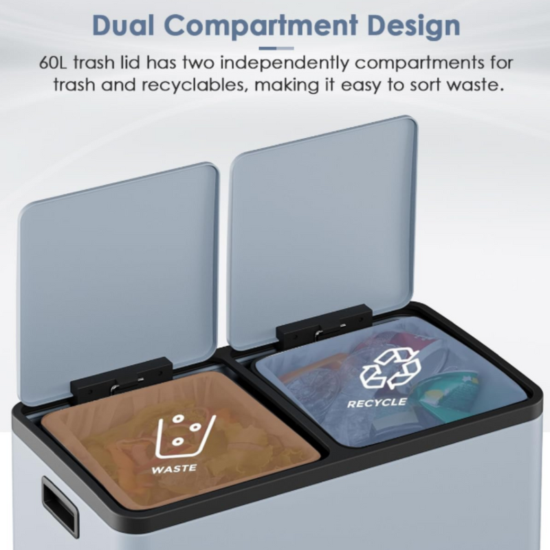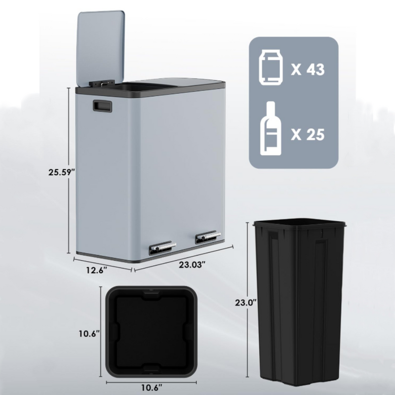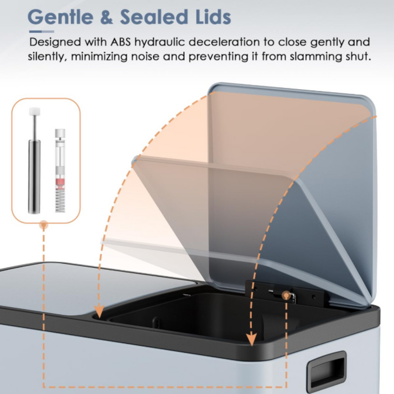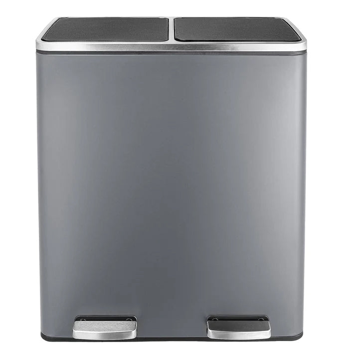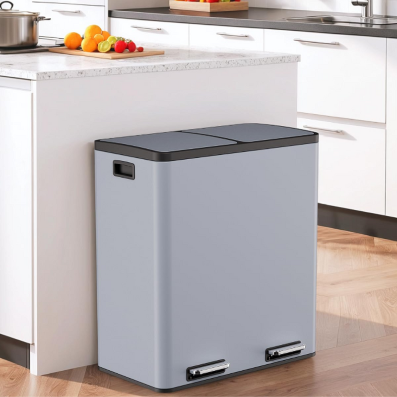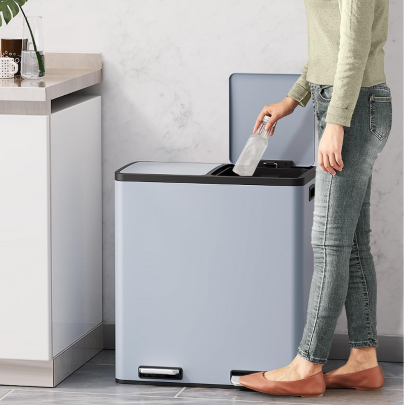 This stainless steel double trash can will be a great addition to your kitchen! The soft-closing lid won’t scare you off with the sound of a trash can lid slamming shut. The closed lid effectively isolates odors and prevents children or pets from accidentally opening the trash can.