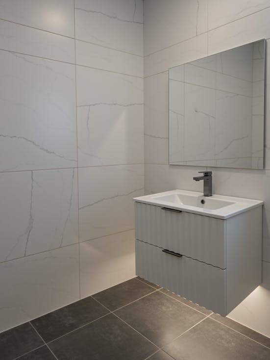 The design is clean and modern, and it fits perfectly in my bathroom. Has really elevated the bathroom style and has received multiple comments on how beautiful the vanity looks. Just what I was looking for!