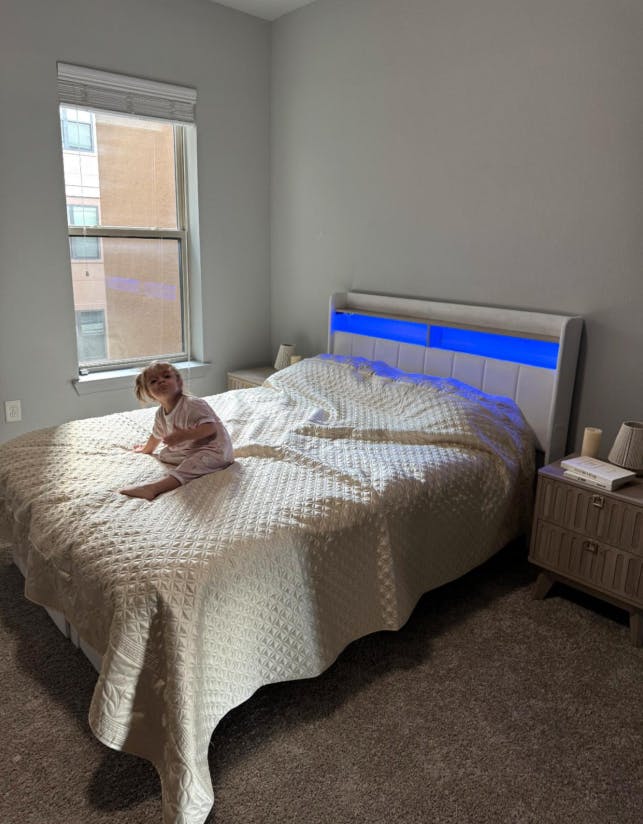 We wanted something modern but functional, and this bed checks all the boxes. The charging ports are super convenient—we can both plug in our phones at night without fighting over outlets. It’s also really sturdy, no squeaking at all. The tufted headboard is comfy when we sit up to watch TV.
