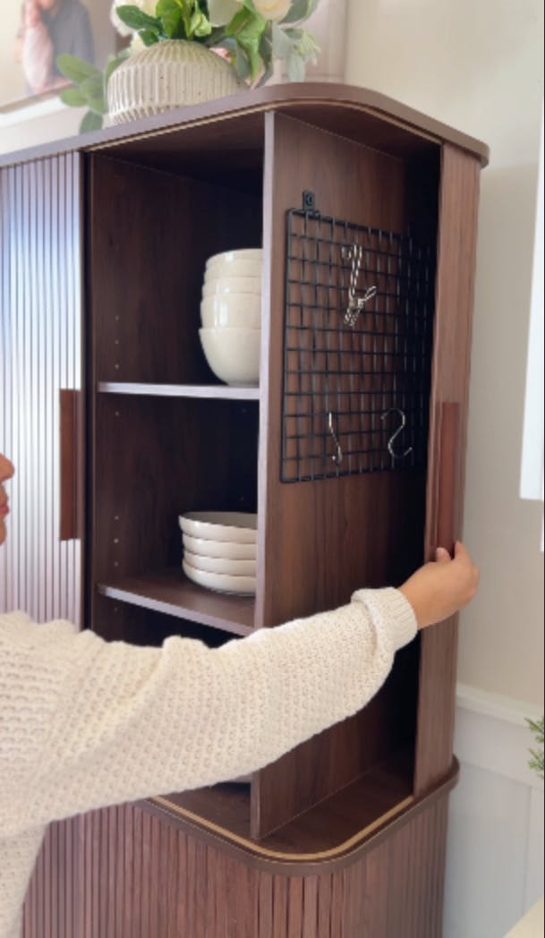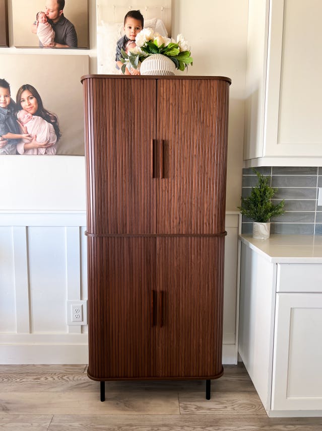 I'm really impressed with this pantry cabinet. It's compact yet surprisingly spacious, with height-adjustable shelves, perfect for storing bottles, toiletries, or kitchen supplies. It's elegant and feels very sturdy. It was very easy to assemble and would be a perfect addition to any kitchen or living room. Definitely worth buying!