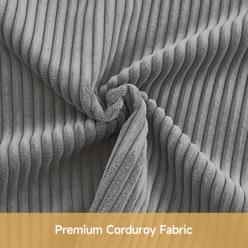 This sofa bed measures 101"L x 54.7"W x 32.7"H and can hold up to 800 pounds. This sofa bed features corduroy fabric. Corduroy fabric combines a warm touch and classic texture but is also easy to clean and maintain. They are wear-resistant, durable, and resistant to fading and deformation.