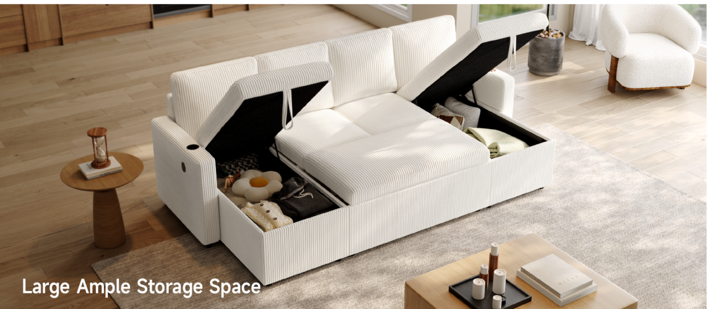 This pull-out couch bed features a dual chaise lounge design that caters to both your leisure and storage needs. Whether you're indulging in a reading session or taking a nap, each independent chaise seat offers unparalleled comfort. Its built-in storage compartment is perfect for decluttering, maximizing the usability and neatness of your living space.