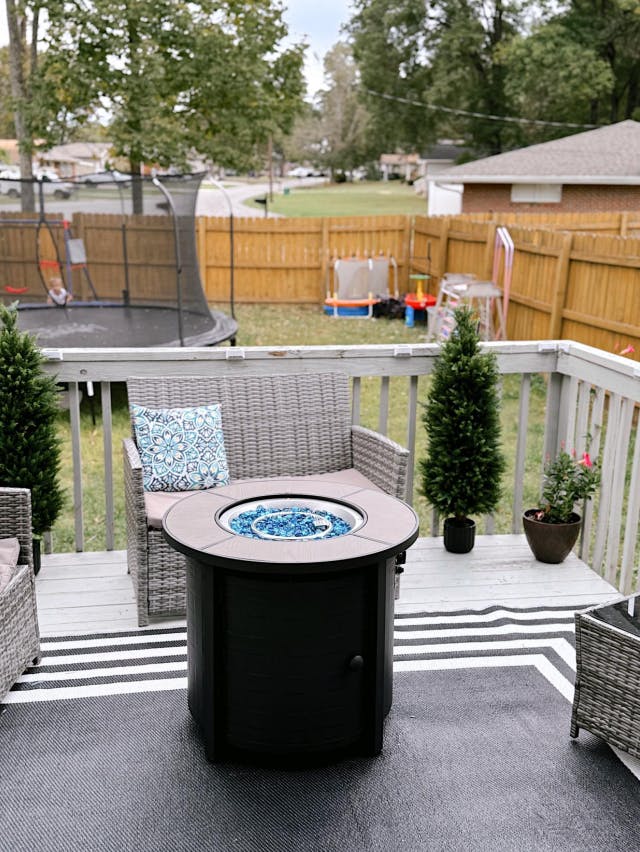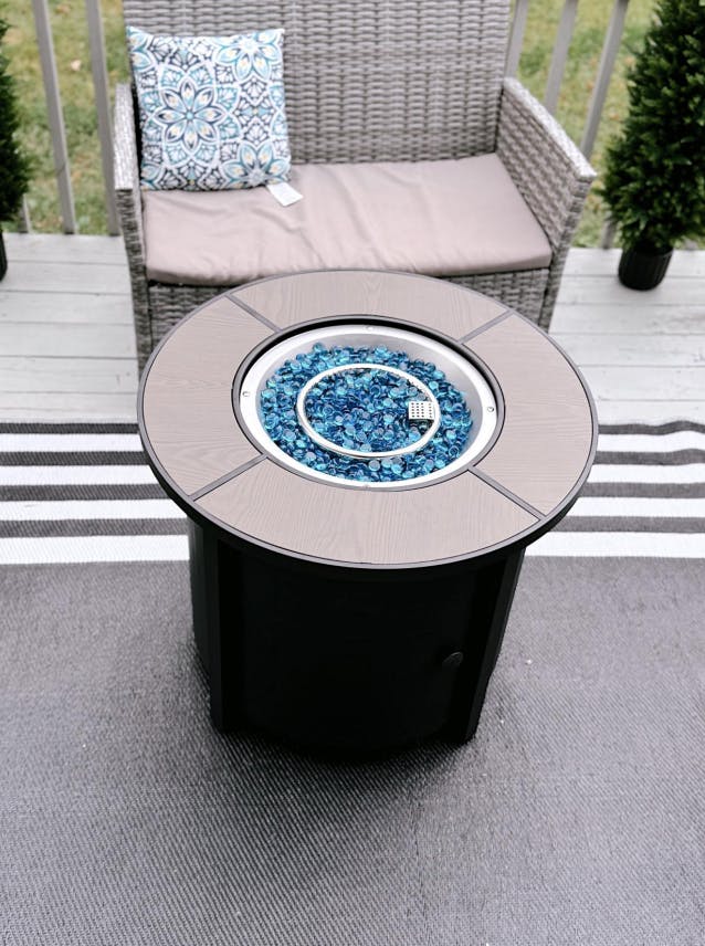 The 30-inch propane fire table provides more space for gatherings of friends and family on cold nights. It is perfect for dining and entertaining without cleaning up smoke, mess, or ashes. This table can also be used as a coffee table and dining table.