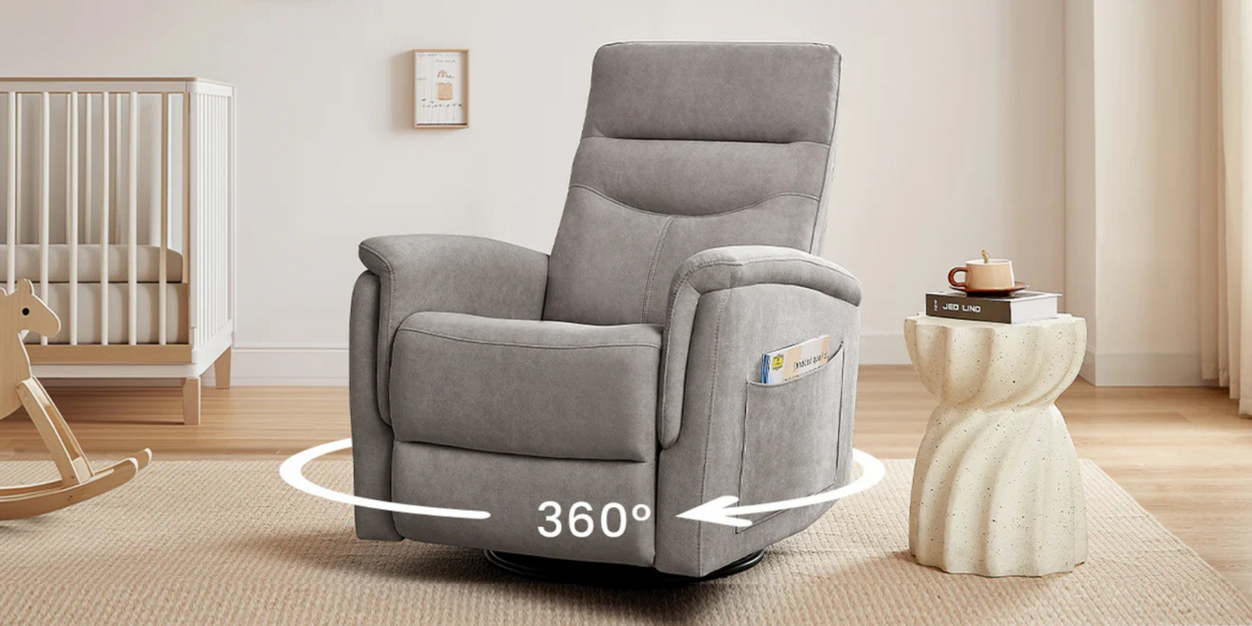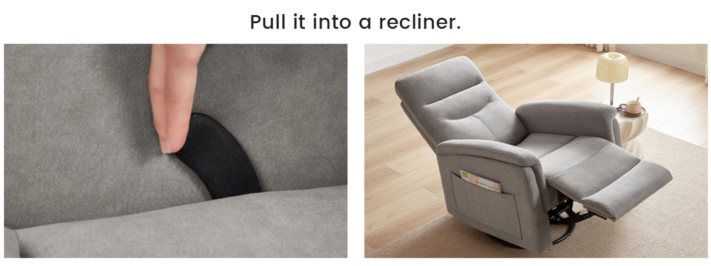 This swivel rocking chair has two major highlights. Firstly, this rocking chair has a base that rotates 360 degrees at the bottom, so you can easily and casually reorient the recliner. Secondly, by pulling the lever on the side of the recliner, you can unfold the sofa and relax your legs.