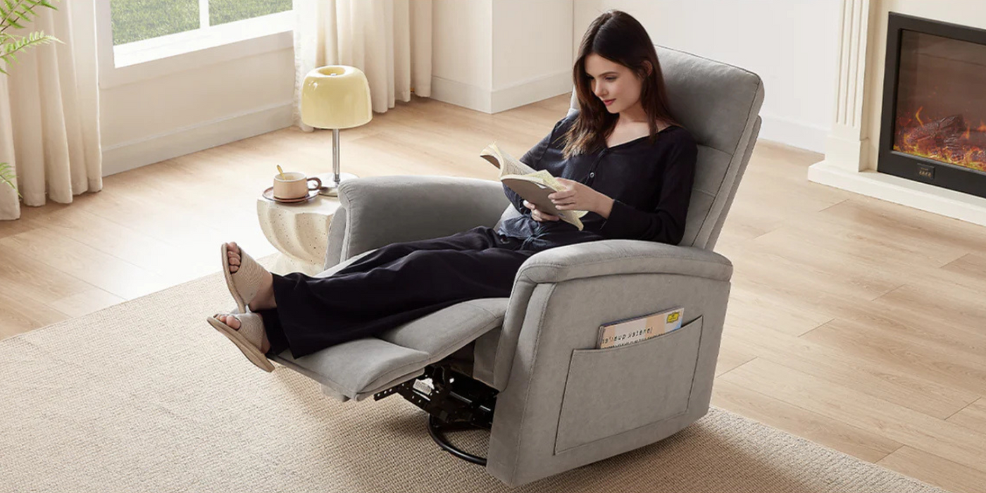 The rocker recliner is crafted from soft and breathable matte velvet, which is easy to clean, ensuring both comfort and convenience. Meanwhile, the seat cushion of the large Velvet Chair is equipped with individual pocket springs and high-density foam to ensure excellent support and long-lasting durability.