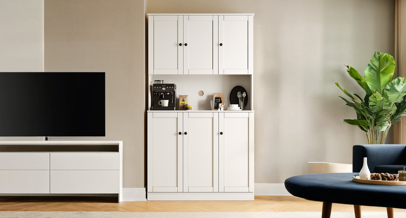 71" Kitchen Storage Cabinets with 6 Doors and Adjustable Shelves, Tall Pantry Cabinets for Kitchen, Dining Room, White