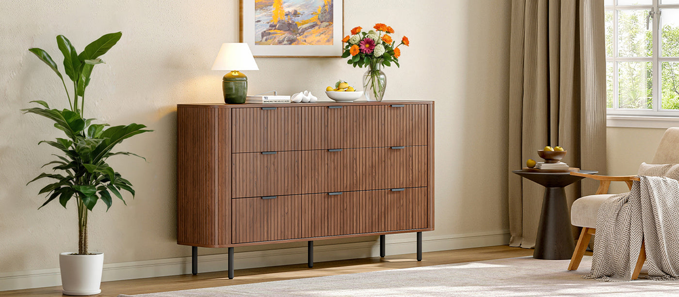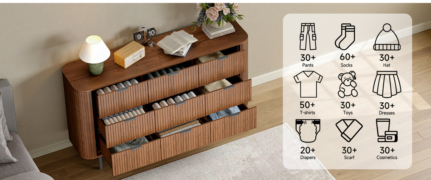 This dresser is made to give you plenty of storage while keeping a simple look. The drawer dresser features a smooth wood grain finish with rounded corners and groove panels, making it easy to match with various room styles.