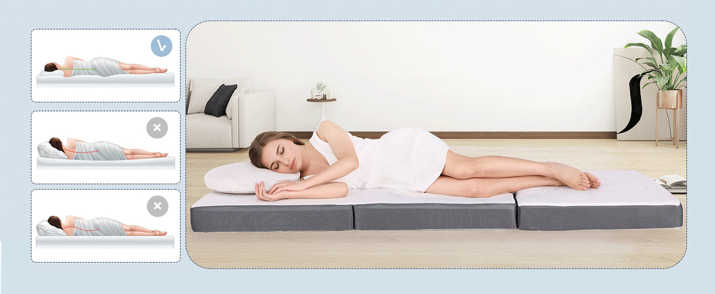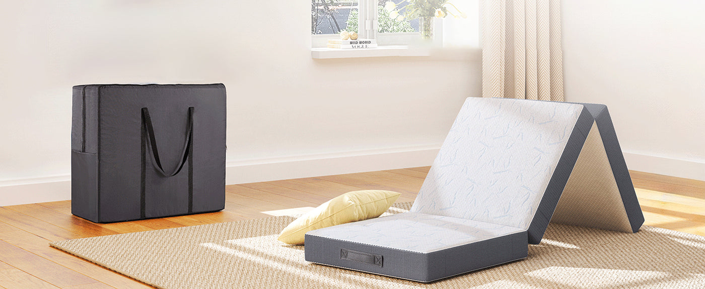 This memory foam is more portable and space-saving, and the organizer bag is very easy to carry and store. It can be converted between a sofa and a bed, allowing you to rest comfortably wherever you go. When not in use, it can be easily placed in tight spaces such as cabinets or corners.