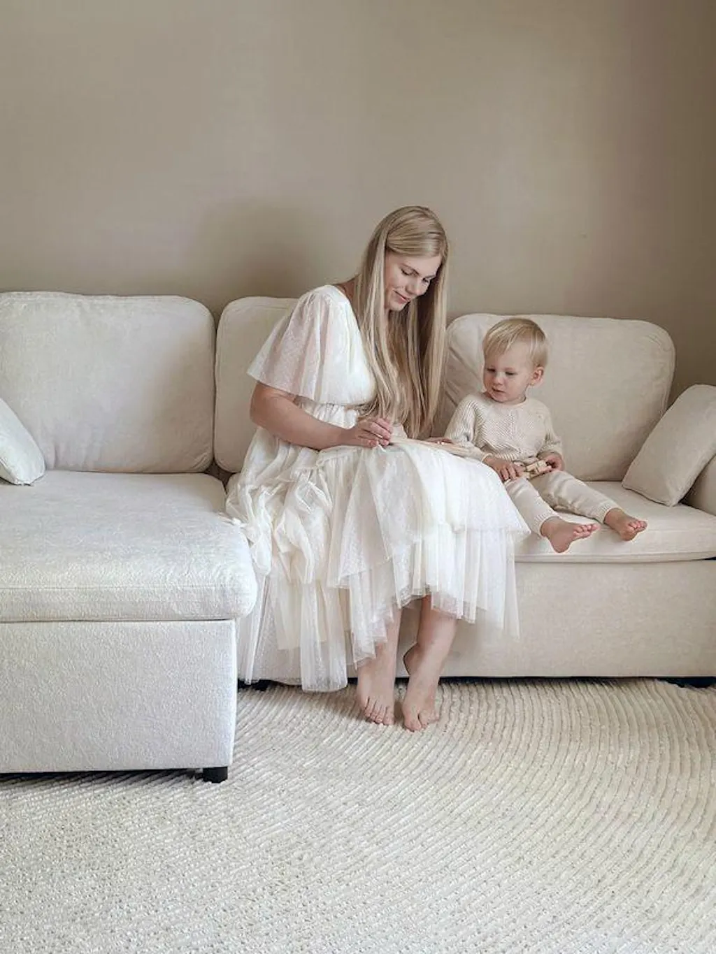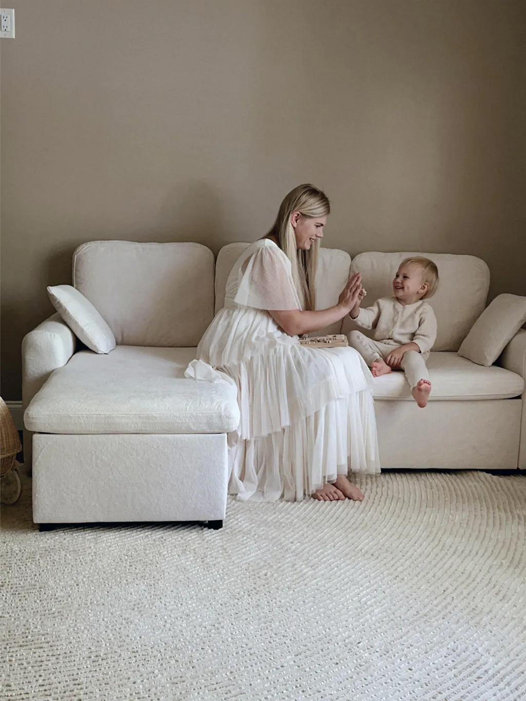 This sofa has a large sitting area and is very comfortable. The white is special and I love it so much, it is simply a decorative piece for my living room. I also bought the white carpet to match my favourite sofa. I rarely review but I must review for this beautiful sofa so that more people can see that it is recommendable!