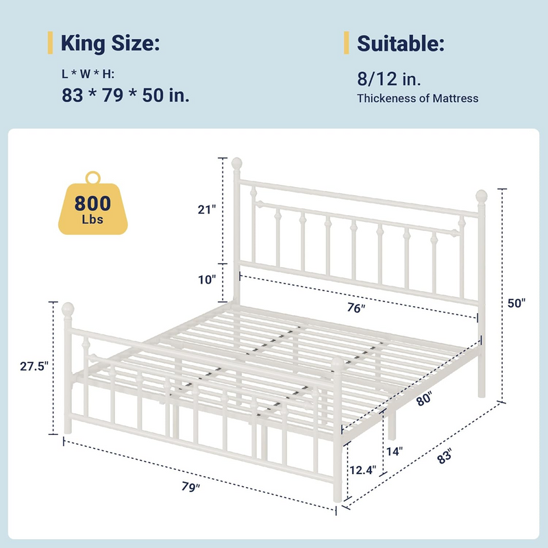 | Product Dimensions | Full: 78"L x 57"W x 50"H Queen: 83"L x 63"W x 50"H King: 83"L x 79"W x 50"H |