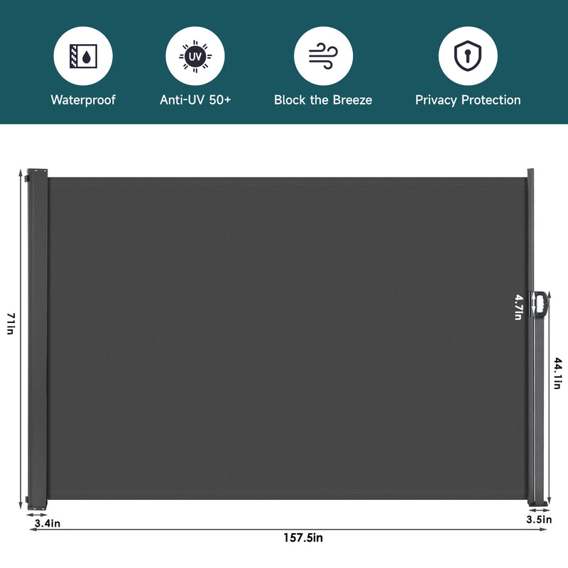 Outdoor Retractable Side Awning Patio Privacy Screen With UV-resistant, Waterproof for Garden, Balcony