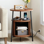 Side Table, Round End Table with Storage, 2-Tier Nightstand with Charging Station and Steel Frame