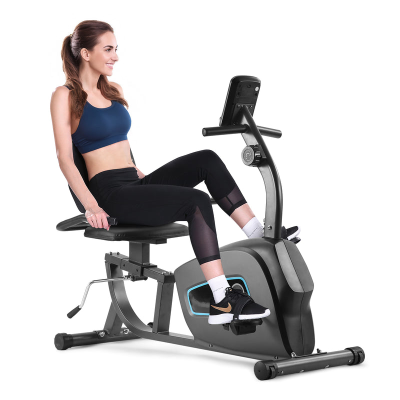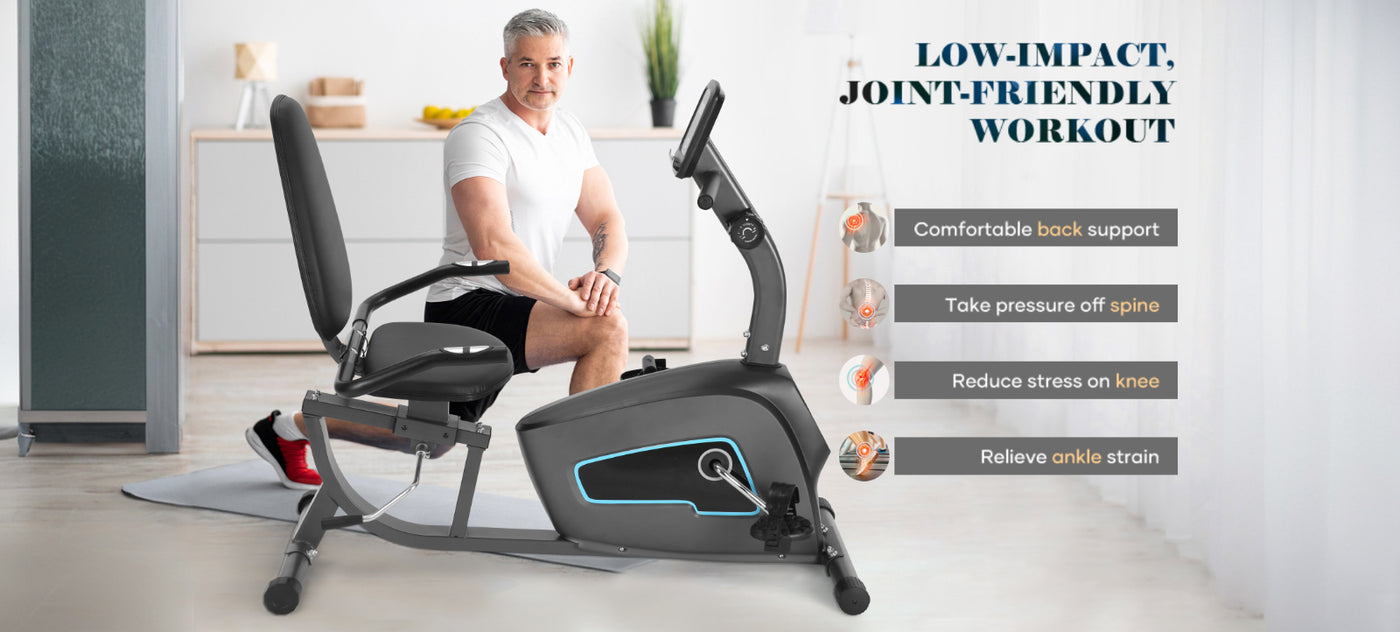 With 8 levels of resistance, this lumbar exercise bike gives you the flexibility to work out at your fitness level by offering you a choice of different exercise intensities. It moves in a way that engages the entire body, so almost anyone can begin a comfortable, low-impact workout, especially seniors and those who are less fit.