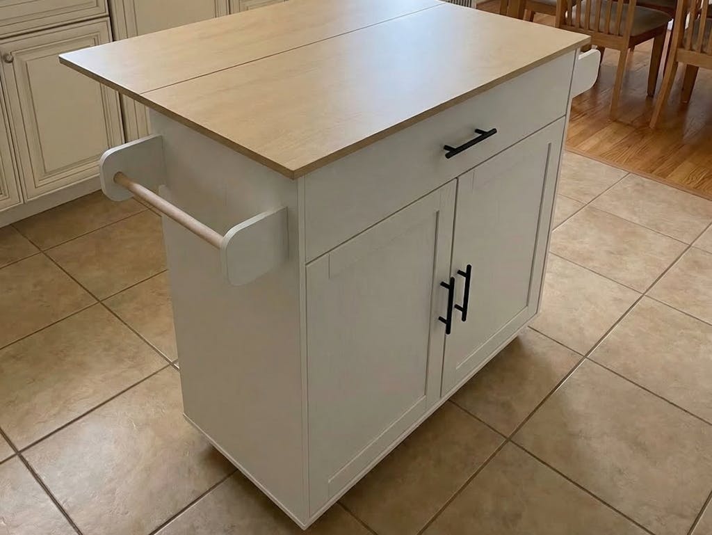 This rolling kitchen island cart adds flexible workspace and smart storage to your kitchen without the cost or hassle of a full remodel. Its clean, timeless design blends effortlessly with a variety of kitchen styles while enhancing everyday functionality.
