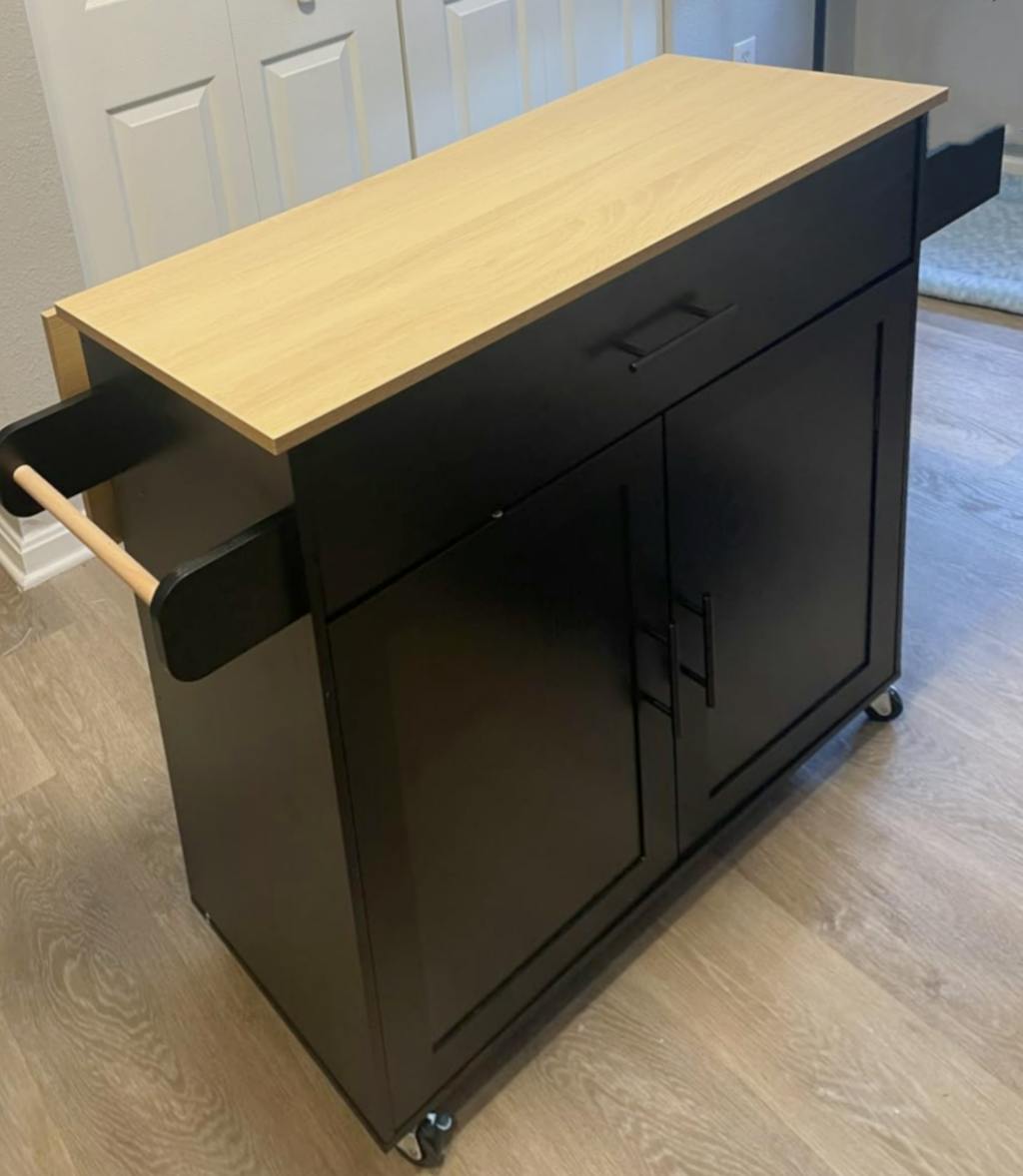 Made from durable MDF board, this kitchen island cart is built for long-lasting strength and stability. It works well as a kitchen island, dining bar, microwave cart, baker’s rack, hotel cart, or workstation, and is designed for easy, straightforward assembly.