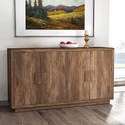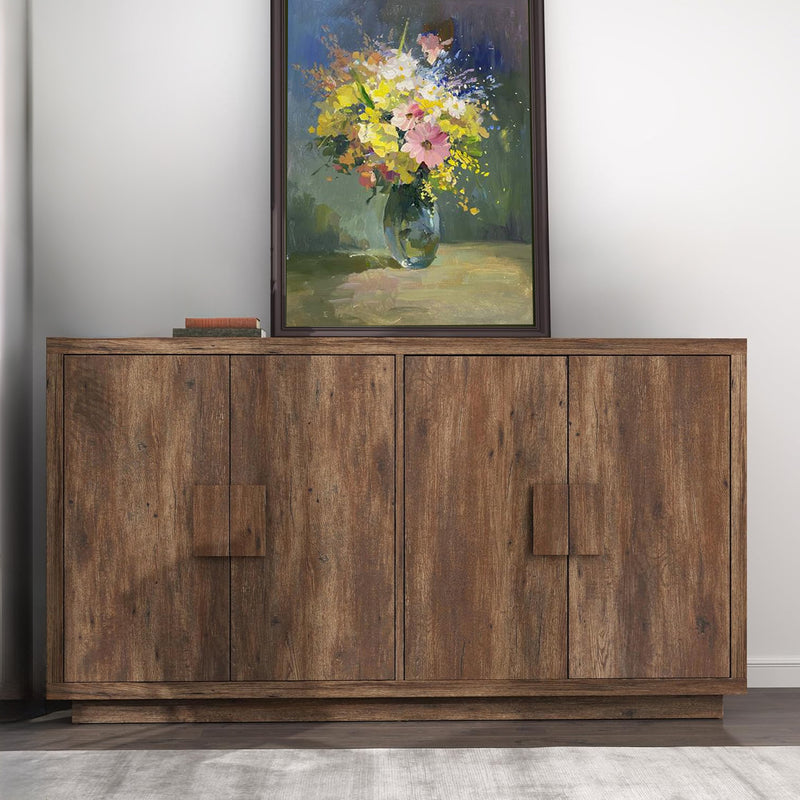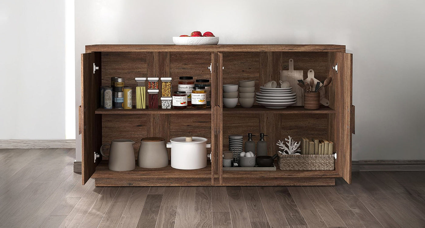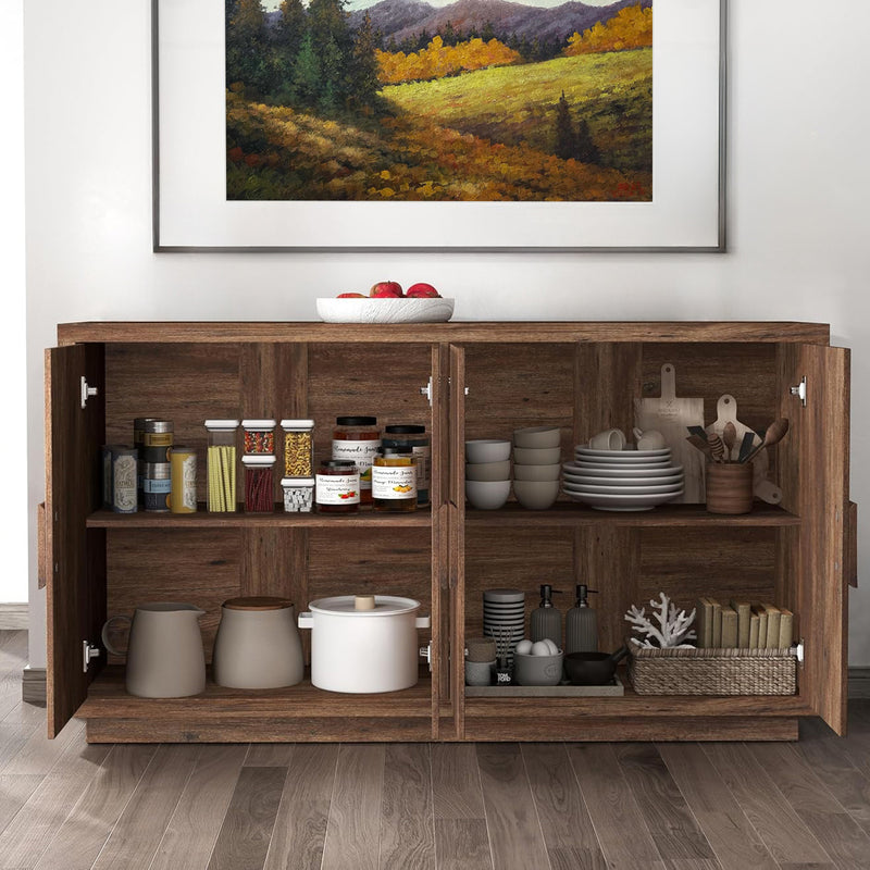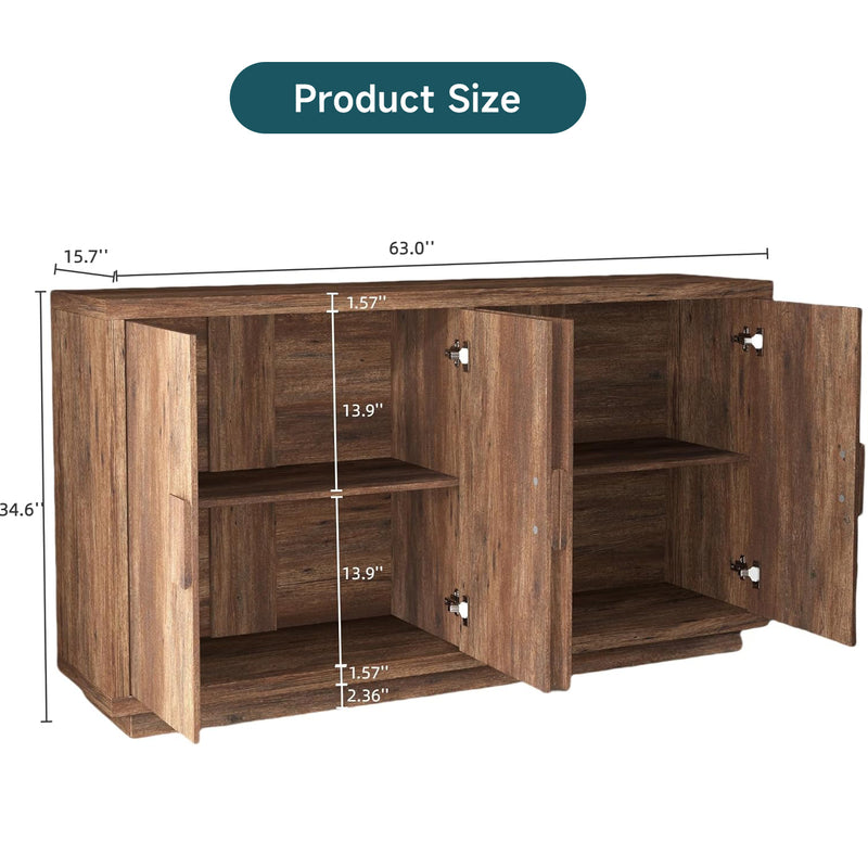 The dimensions of sideboard are 15.7"D x 63"W x 34.6"H, with two tiers of storage on the left and right sides with 4 doors. This sideboard has enough storage space for different storage needs.