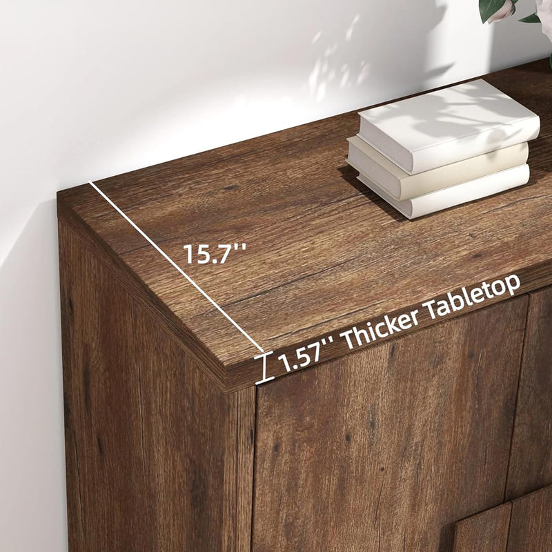 This sideboard is made of MDF and particle board, which is durable and comes with 1.57-inch thickened wood boards and a wooden base to ensure long life. Its weight capacity are 440 pounds; up to 50 pounds per shelf. This sideboard also comes with a wall fixing device that can be fixed to the wall to prevent it from tipping over, ensuring safety.