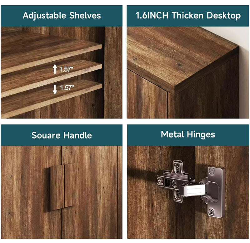 The cabinet features adjustable and removable dividers that allow you to adjust the layout to suit your storage needs, and square wooden door handles that are durable, rust-resistant, and easy to pull open.