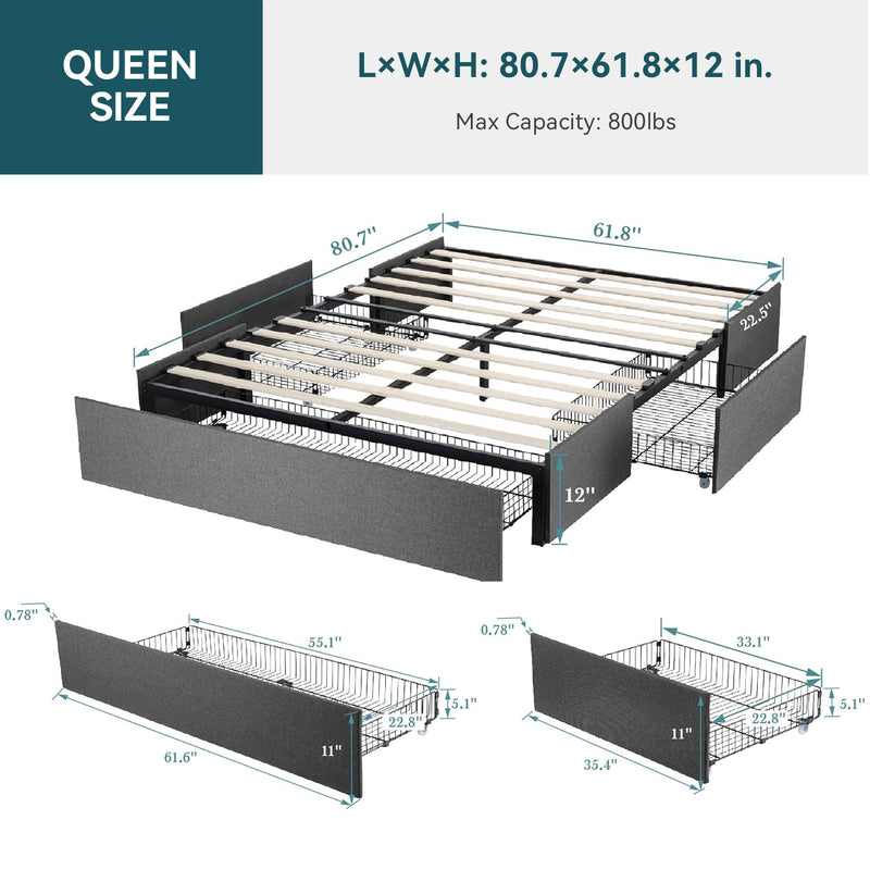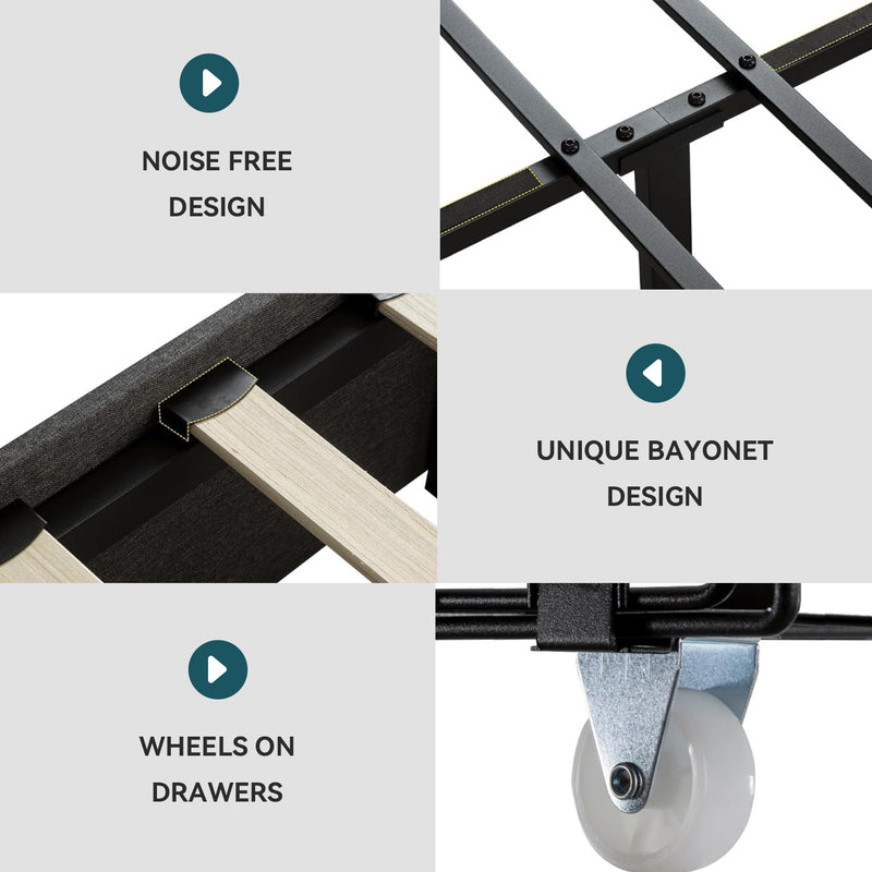 | Included Components | Bed Frame, Drawers, Wood Slats |