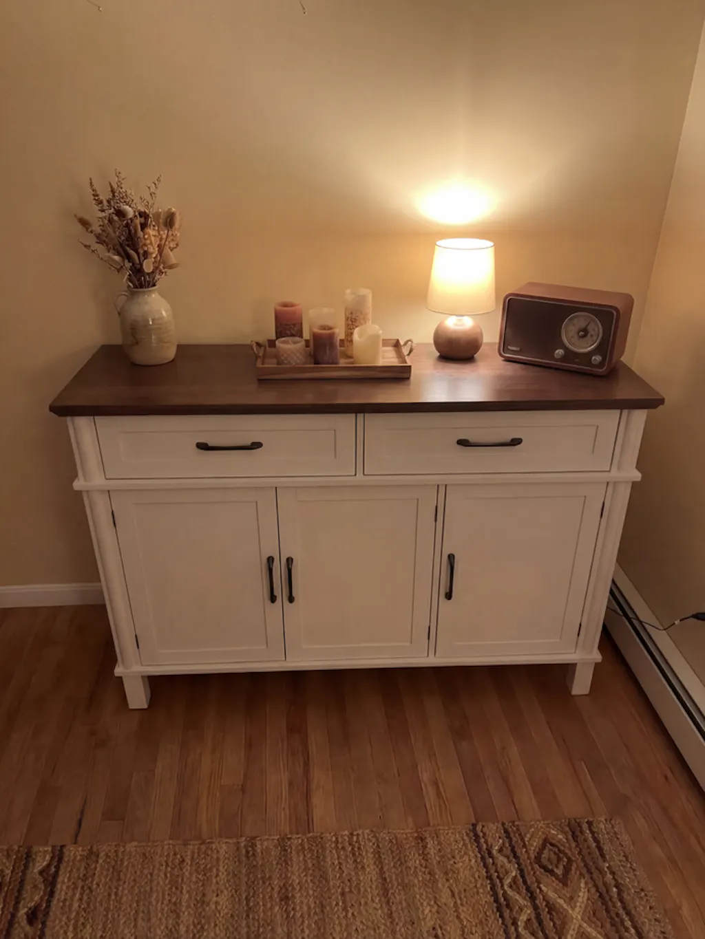 This sideboard cabinet is available in two size options: 48 inches and 55 inches.